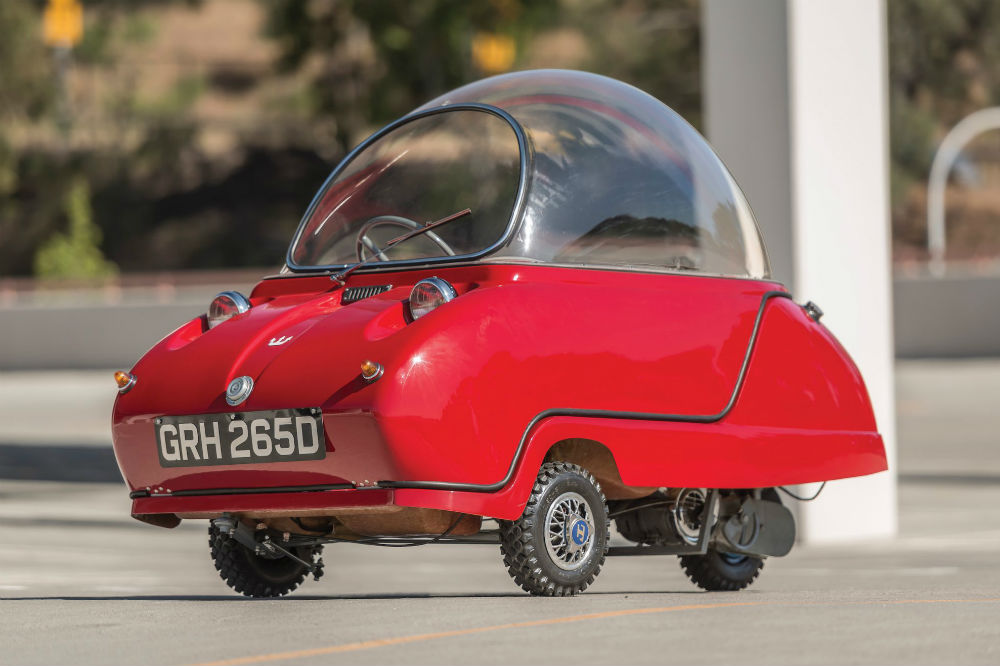Quien más y quien menos ha oído hablar del Peel P-50, el coche más pequeño del mundo. Pero seguramente menos conozcan su evolución, el Peel Trident. Deberían haber pensado que esa cúpula al más puro estilo de la nave de los Supersónicos crearía un efecto invernadero que hacía prácticamente imposible aguantar dentro del habitáculo en un día soleado y caluroso.