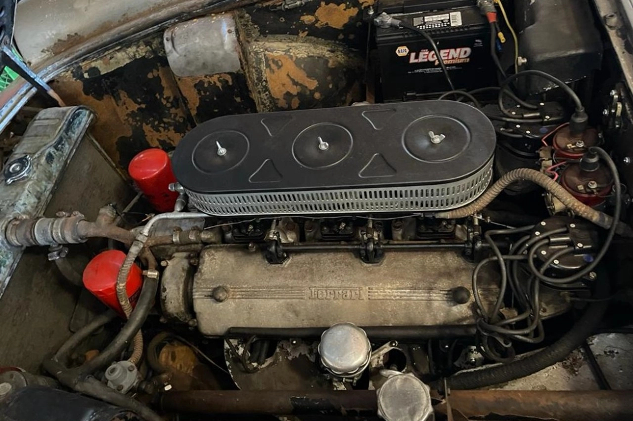 El Ferrari 250 GT está a la venta en Gullwing Motor Cars, que intenta hacer virtud del defecto, señalando que “posiblemente sea el ultimo ejemplar sin restaurar del mundo”.