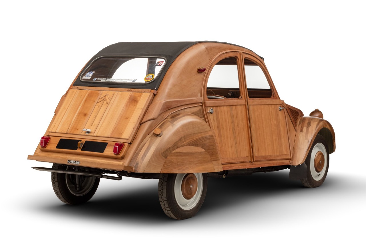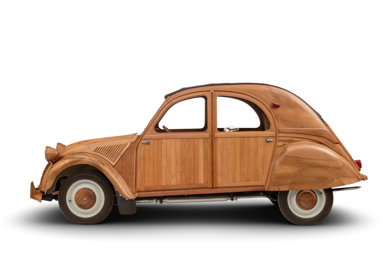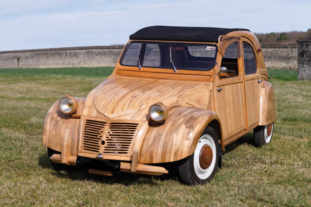 El Citroën 2 CV (esta es su historia) más caro del mundo ha sido vendido por 210.000 euros en la 35ª subasta Garden Party de Rouillac, celebrada en el Château d'Artigny, cerca de Tours, Francia. Pero ¿qué tiene de especial este ejemplar para que cueste tanto? Pues que está realizado en madera, inspirado en un modelo de 1955, a cargo del ebanista Michel Robillard, quien creó la carrocería a partir de paneles de madera procedente de diversos árboles frutales, como cerezos, perales y manzanos.