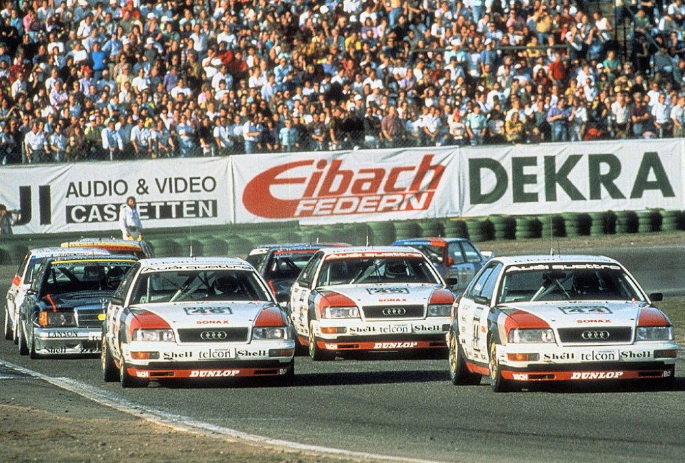 También se obtendrían grandes resultados en el DTM. En 1990, Audi se inscribe en el Campeonato Alemán de Turismos, lo que permitió a Stuck conseguir el título de pilotos en su primera participación en el campeonato con un Audi V8 quattro. En 1991 el título acabaría en manos de Frank Biela. En 1992 Audi se retira tras haber ganado 18 de las 36 carreras disputadas. En 1996, el Audi A4 quattro Supertouring, con un motor 2.0 de cuatro cilindros, participó en siete campeonatos nacionales en tres continentes y los ganó todos.