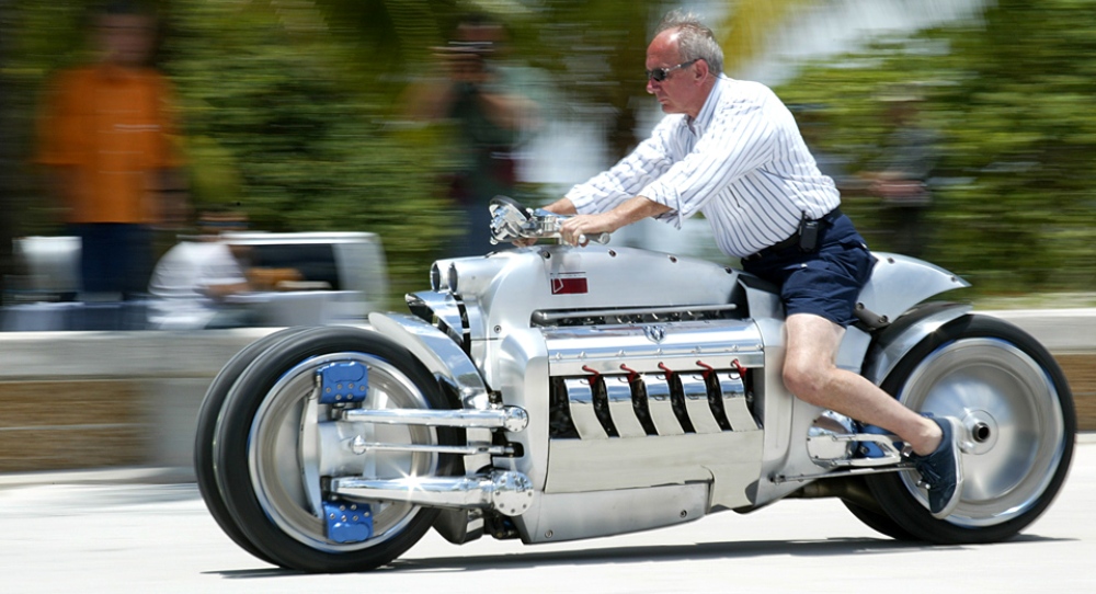 Pero lo más loco que Chrysler hizo con el motor V10 del Viper fue ponerlo en una motocicleta. El Dodge Tomahawk Concept de 2003 estaba unido a cuatro ruedas, pero se conducía más como una moto que como un quad. De cualquier modo, este concept fue construido en base al V10 del Viper, que por entonces tenía una capacidad de 8.3 litros. Por supuesto, el fabricante americano no tenía experiencia en el mundo de las motos, por lo que no pasó a producción.