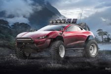 No puede faltar tampoco el Dodge Challenger SRT Demon, el poderoso muscle car y su motor de 840 CV enfrentándose a los áridos terrenos del desierto. En esta ocasión, la suspensión elevad y el parachoques son comunes, pero también incluye un peldaño pasa acceder al interior y una baca para llevar neumáticos o provisiones. Es, quizá, uno de los mejores renders de la galería de imágenes por realismo y porque no sería tan extraño poder ver uno de estos todoterreno.