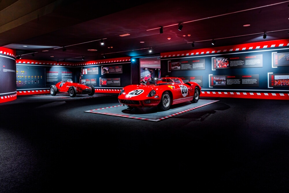 La exposición está repleta de monoplazas legendarios, como el Ferrari 500 F2 de Alberto Ascari, el Ferrari D50 de Juan Manual Fangio, el Ferrrari Dino 246 F1 de Mike Hawthorn, el Ferrari 156 F1 de John Surtees, el Ferrari 312 T de Niki Lauda, el 312 T4 de Gilles Villeneuve y Jody Scheckter y los Ferrari F2004 y F2007 en los que Michael Schumacher y Räikkönen lograron grandes éxitos en la máxima competición, con un total de 31 títulos mundiales (15 de pilotos y 16 de constructores).
