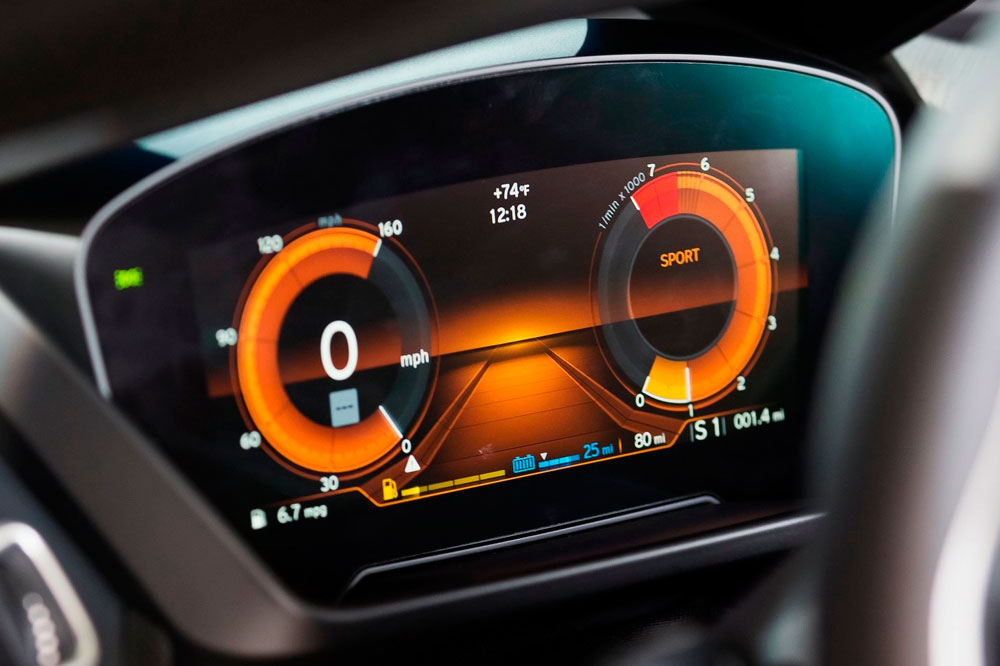 Me acomodo en la plaza del conductor y compruebo en un instante que la posición optima se consigue en un santiamén. Sigo sentado en posición muy baja y continúo rodeado de la consola central, como si se tratase de un coche de carreras. Mis ojos descubren otra novedad, que es el sistema de navegación Professional con un display táctil de 8,8 pulgadas y nuevo software. El menú principal se presenta ahora en la pantalla en forma de mosaico horizontal con contenido “Live”.