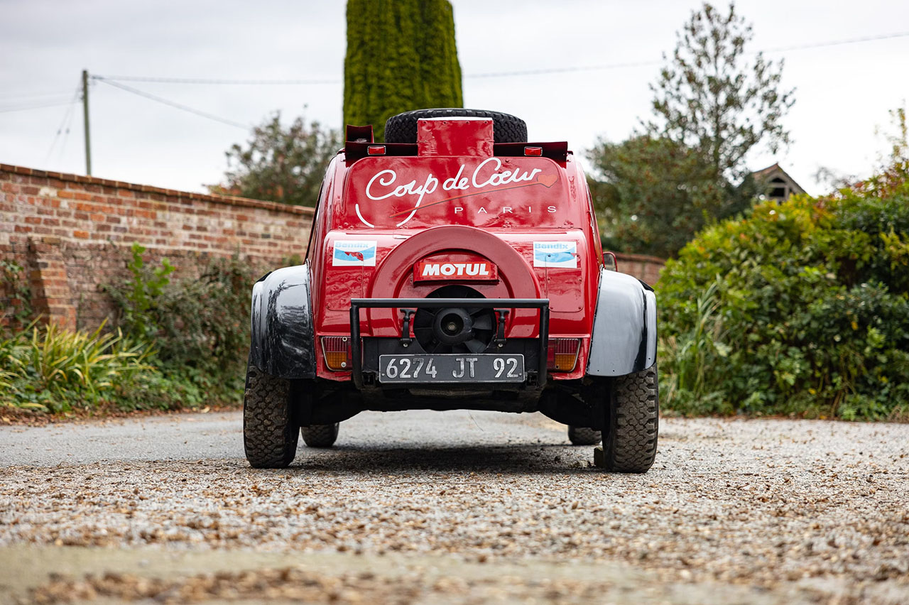 Espectacular, maravilloso, llamativo, sorprendente, original. Podríamos llenar este artículo de epítetos pomposos ante este Citroën 2CV 4x4 -como el Citroën 2CV Sahara, que aquí tienes la prueba- que data del año 1974 y que ahora se va a subastar a través de la web Collecting Cars. Además, este ejemplar bimotor es único, puesto que está preparado para rallyes.