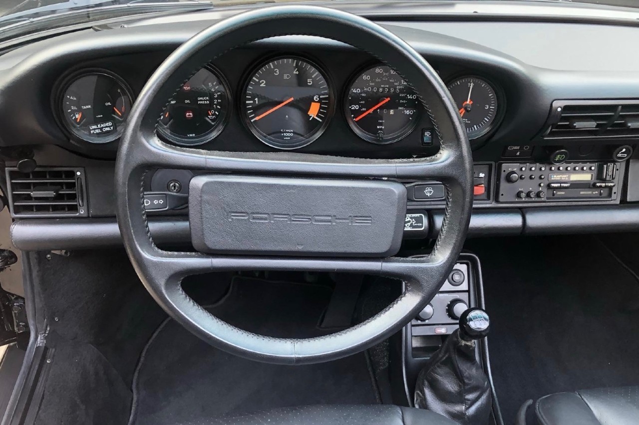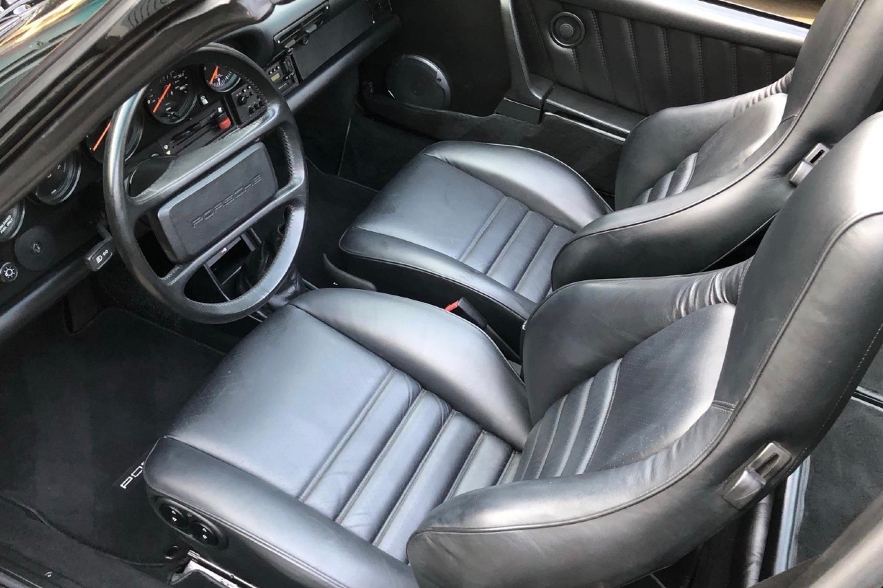 Presenta el clásico diseño de los modelos Targa, con el montante central que protege a los ocupantes en caso de vuelco y la luneta trasera. La carrocería está pintada en color negro, igual que las llantas Fuchs de 16 pulgadas, envueltas en neumáticos Continental Exrreme Contct, fechados en 2019. Los faros corresponden a la versión europea. El interior fue restaurado en 2020, incluyendo asientos de cuero y un equipo de sonido Blaupunkt Monterey, con una cubierta de cassette de la época y conexión bluetooth.