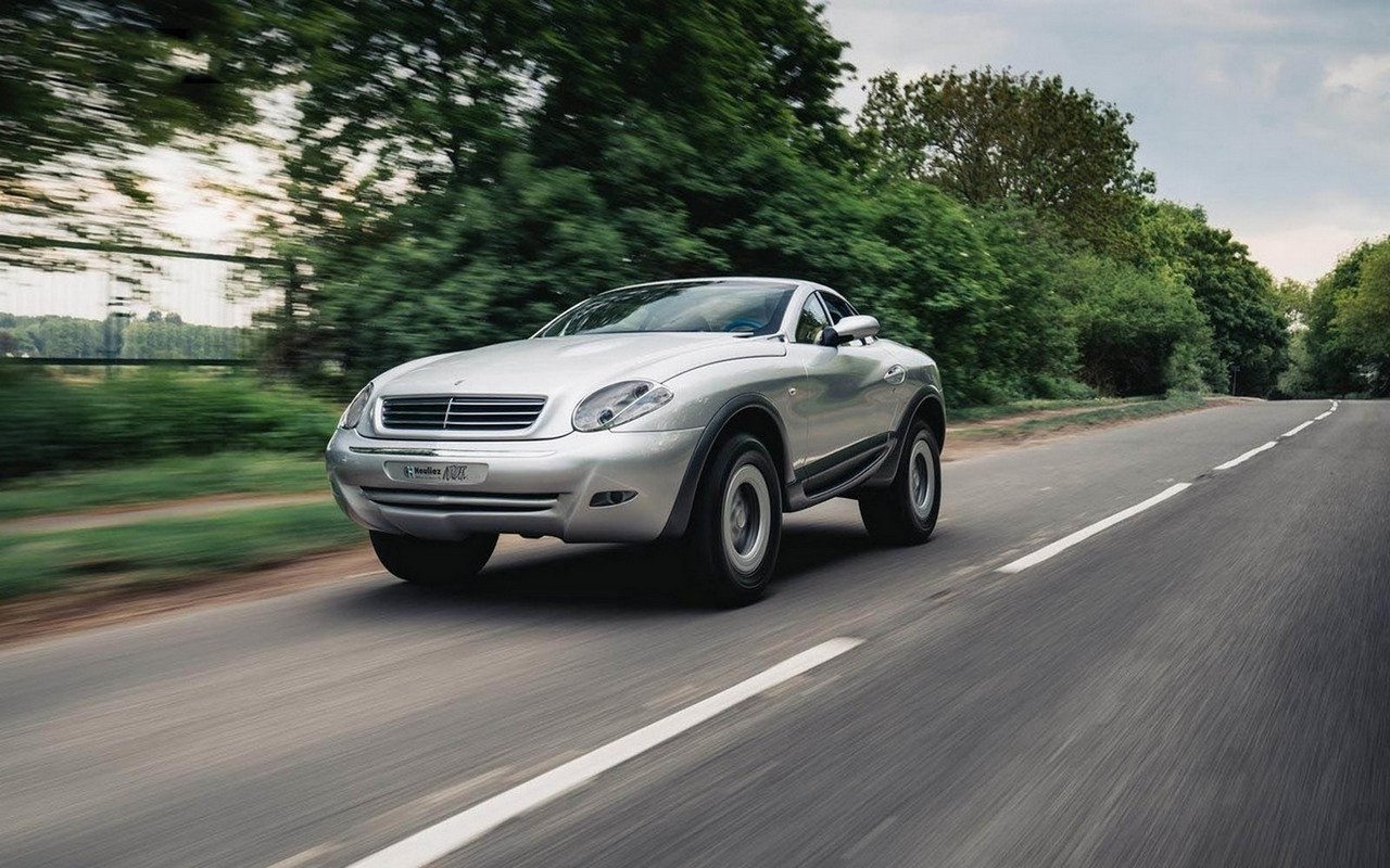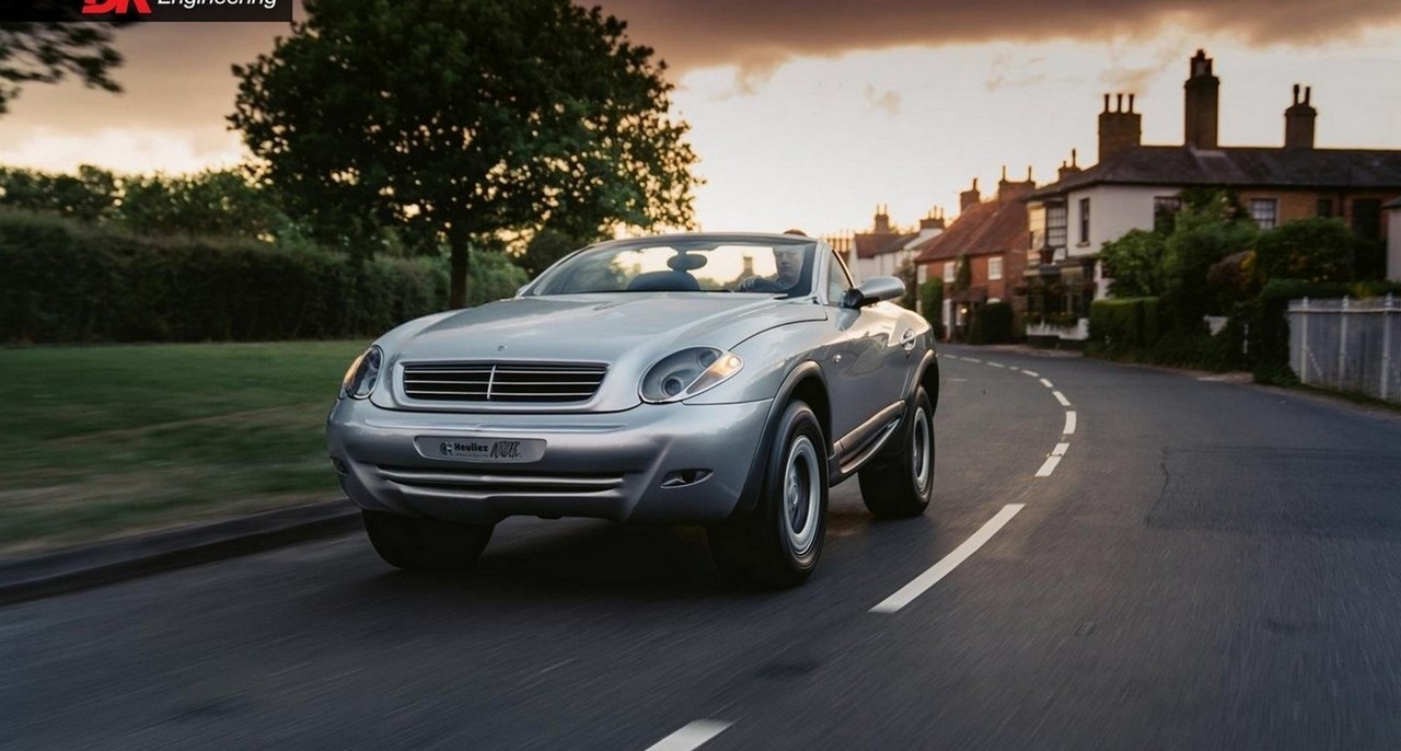 Y en el Salón del Automóvil de París de 1996, Heuliez desarrolló un descapotable todoterreno. Se trataba de un Mercedes G 320 mezclado con un Mercedes SLK, para que nos entendamos. El proyecto estaba propulsado por un motor de seis cilindros y 3,2 litros y una transmisión automática de cuatro velocidades con tracción total. Por supuesto, como no podía ser de otra manera en un todoterreno, contaba con bloqueos de diferencial.