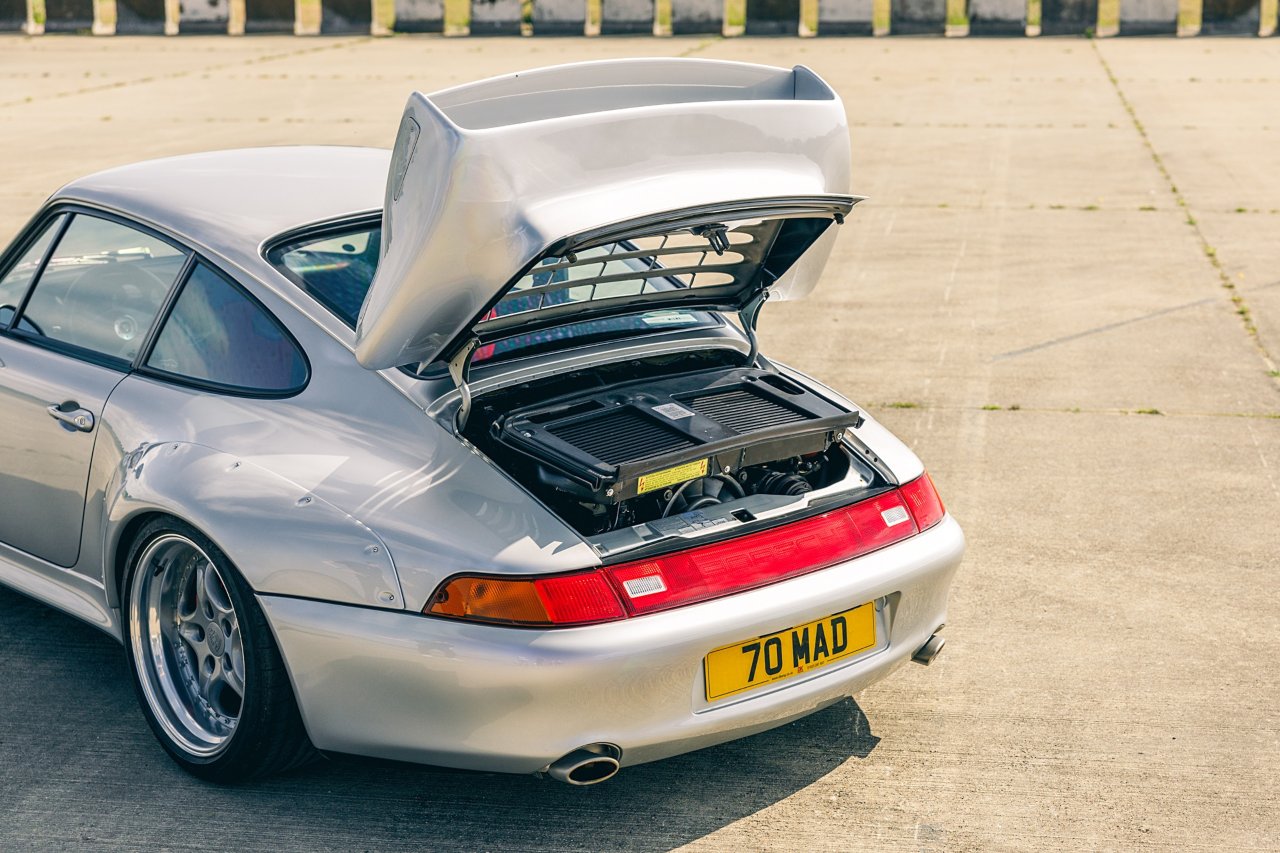 Y, con un peso de apenas 1.300 kg, completaba la aceleración de 0 a 100 km/h en 3,9 segundos, y llegaba hasta los 300 km/h. "Es, en esencia, un 993 Turbo con tracción trasera y con unos pasos de rueda hiperanchos aplicados con remaches", explica Chris Harris. "Pero al conducirlo, es muy diferente. En realidad, se parece más a un 993 RS, con ingentes cantidades de potencia y de par". Y, en términos estéticos, el presentador valora que "ningún otro 911, ni antes ni después, ha tenido unas formas tan escandalosas. Es un fabuloso despliegue de bultos y alerones".