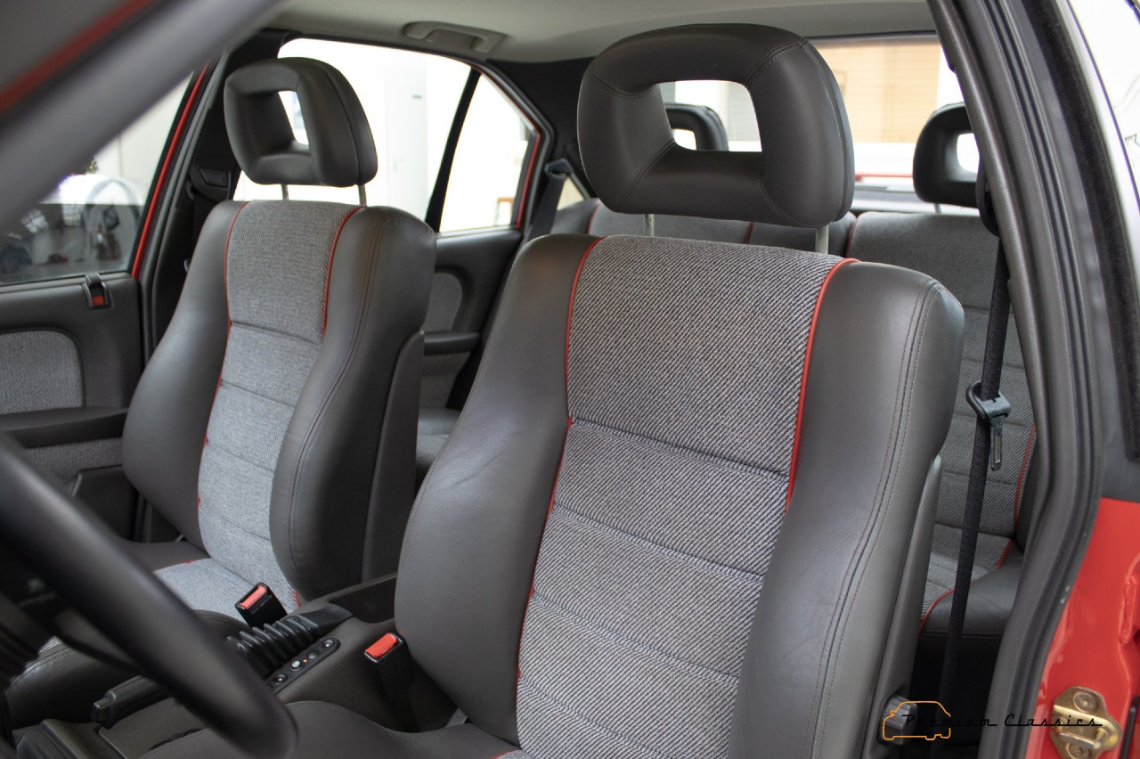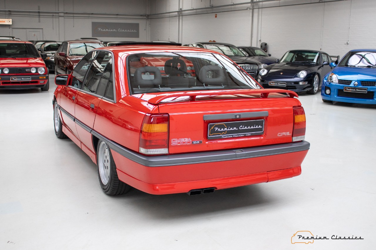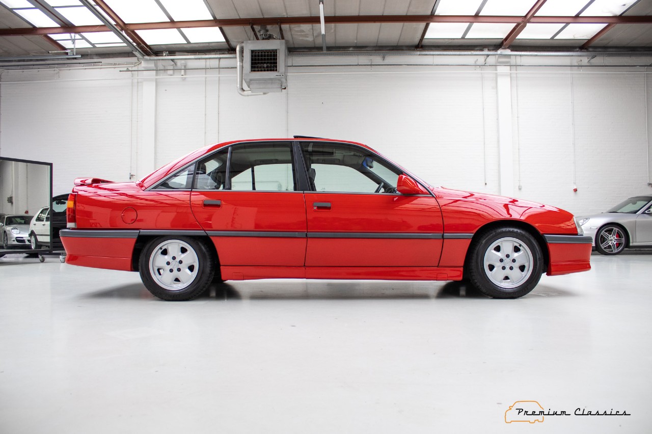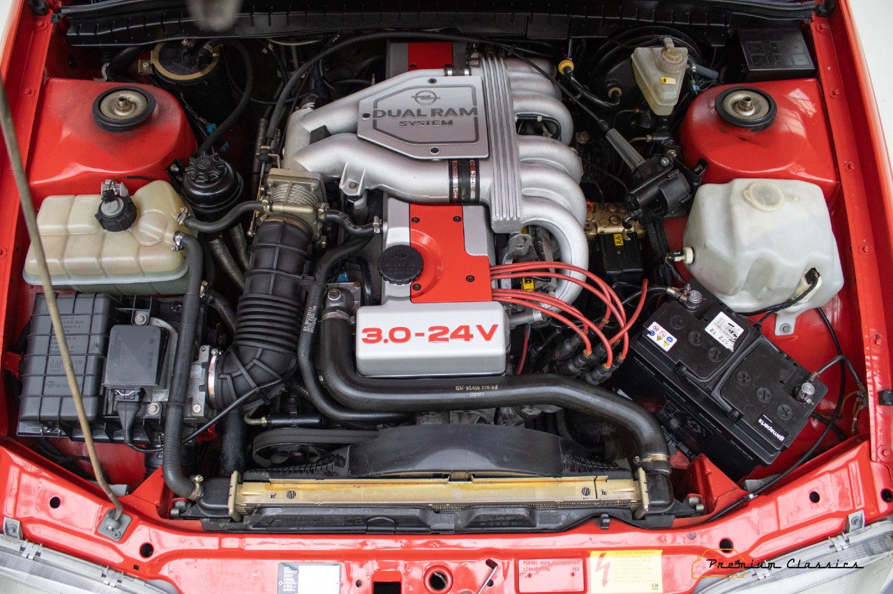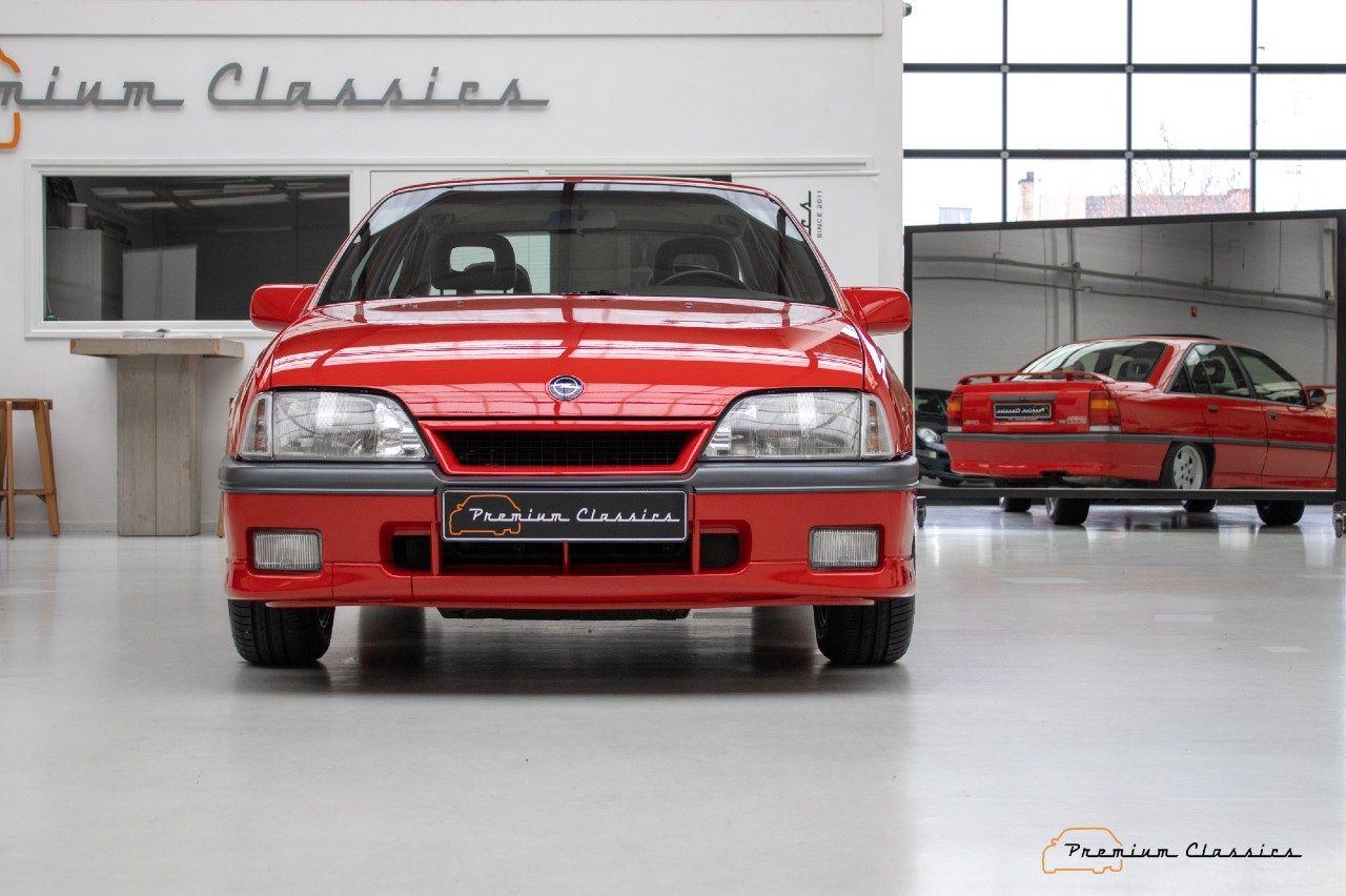 Esta berlina de Opel que está a la venta en Premium Classics, en Países Bajos, fue construido en 1990 y luce un precioso color rojo que le aporta aún más deportividad. El interior tiene una tapicería que mezcla el cuero y la tela en color negro. Está equipado con un motor de gasolina 6L de 3.0 litros y 24 válvulas, que eroga 204 CV, asociado a un cambio manual de cinco relaciones.