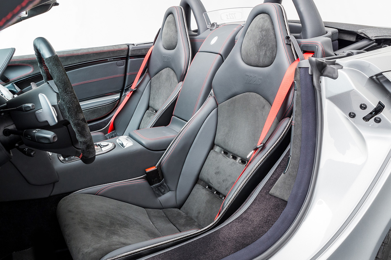 El SLR Roadster 722 S tiene un motor V8 sobrealimentado de 5,5 litros de Mercdes-AMG con 478 kW / 650 CV y un par de 820 Nm. La transmisión automática de cinco velocidades ha sido especialmente diseñada para un alto par y asegura un sprint a la marca de 100 km/h en solo 3,7 segundos.