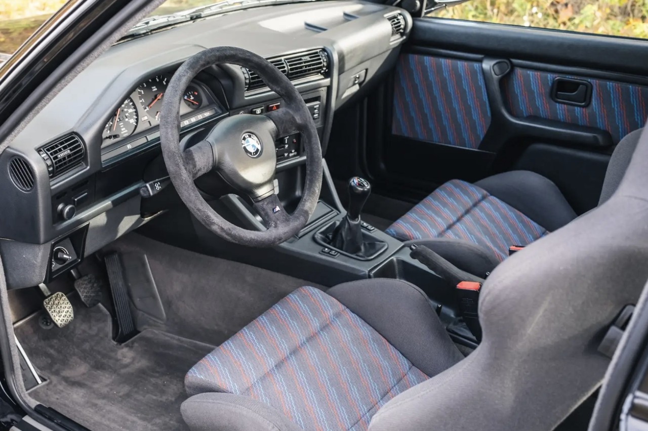 Esta unidad a subasta se entregó nueva en Reino Unido en abril de 1990, ha tenido tres propietarios y acumula solamente 38.114 kilómetros desde el momento de la homologación. El exterior está terminado en negro Jet Black combinado con un interior de tela Motorsport Design en antracita con detalles tricolores. RM Sotheby’s espera que se venda por un precio entre 230.000 y 260.000 euros.