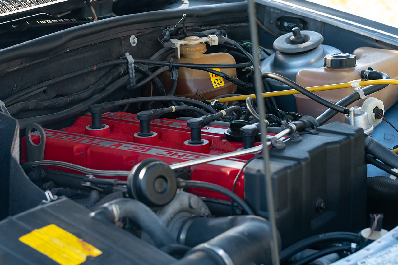 Debajo del motor tenía bastante furia, ya que montaba un propulsor turbo DOHC de 2 litros y 16 válvulas diseñado por Cosworth, que estaba asociado a una transmisión manual Borg Warner T5. A este hatchback de tracción trasera se le atribuyó el desarrollo de unos 206 CV de potencia y 278 Nm de par máximo.