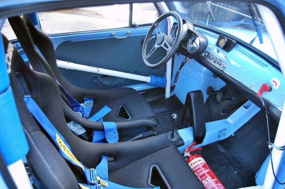 Sin embargo, el máximo esplendor del pequeño Abarth no llegaría hasta 1969, año en el que nace el más radical, el Abarth 1000 TCR Berlina Corsa (‘R’ de Radiale), versión destinada al denominado Gruppo 2 de carreras. Sobre la base del mismo motor de cuatro cilindros se instaló una pareja de carburadores Weber 40 DCOE, una caja de cambios manual de cinco velocidades, embrague monodisco seco tipo Hausermann y diferencial autoblocante.