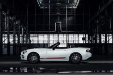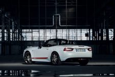 Estos elementos, firmados por Mopar, incluyen una nueva barra antivuelco, el marco del parabrisas en negro, las tapas de los retrovisores en gris oscuro, las llantas de aleación ligera de 17 pulgadas con un diseño especial, un emblema tricolor en la parte trasera con la bandera italiana o un adhesivo rojo sobre el lateral. Y a todo esto hay que sumar el amplio equipamiento de serie de la versión en la que se basa el 124 Spider S-Design.