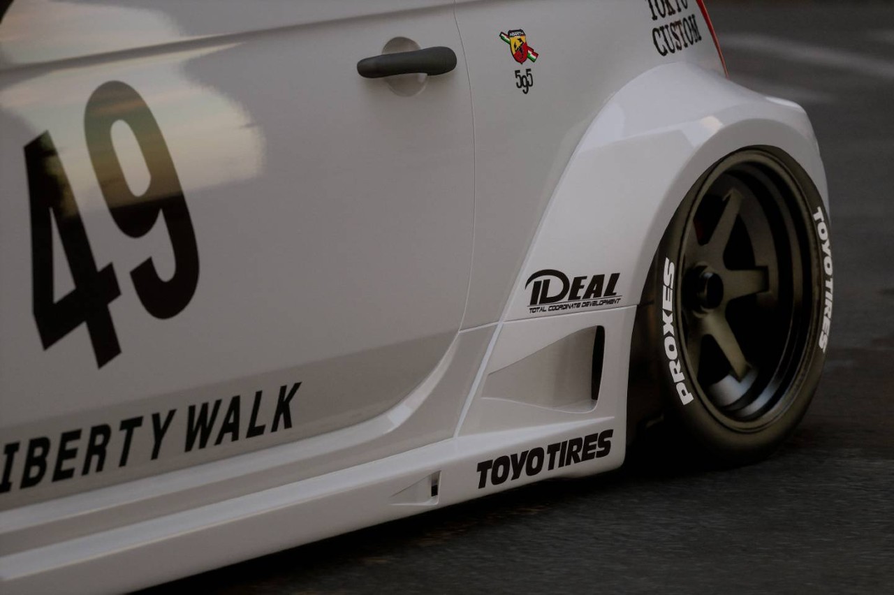Liberty Walk es un preparador japonés famoso por hacer creaciones un tanto polémicas, como un Ferrari F40 (prueba) al que modificó con un kit de carrocería y molestó tanto en Maranello que la marca retiró esa unidad del registro oficial. Ahora ha vuelto a la carga con otro modelo italiano, menos exclusivo, pero también muy picante. Este es el Abarth 500 más gordo de todos los tiempos, firmado por Liberty Walk.