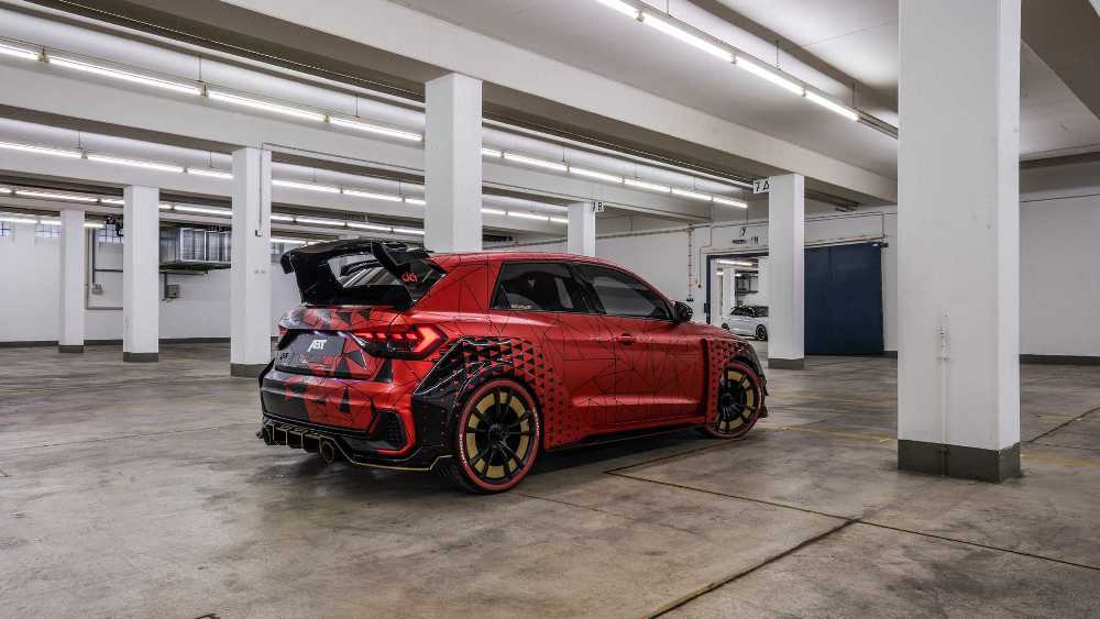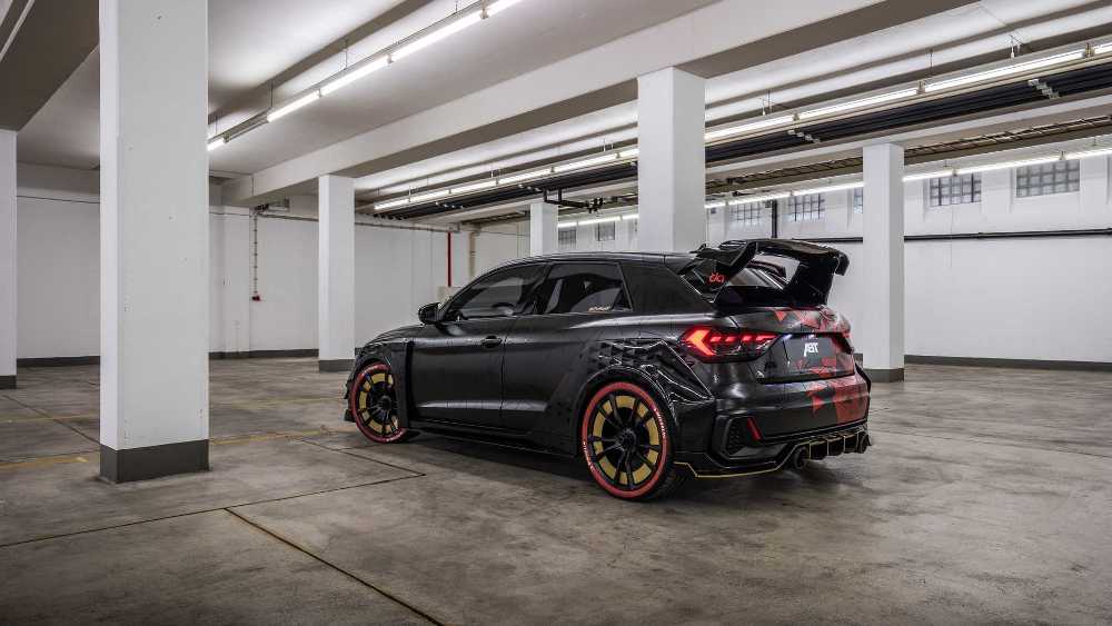 Equipado con un juego de llantas forjadas aerodinámicas de 19 pulgadas, el A1 Sportback de ABT es 55 mm más ancho en la parte trasera que el vehículo original gracias a sus nuevas defensas. Las puertas traseras han sido cubiertas, mientras que la zaga ha sido aderezada con un enorme alerón y un difusor de gran envergadura con dos salidas de escape gemelas. Además, muchos elementos de la carrocería han sido modificados o reemplazados directamente, como el capó o las carcasas de los espejos retrovisores.