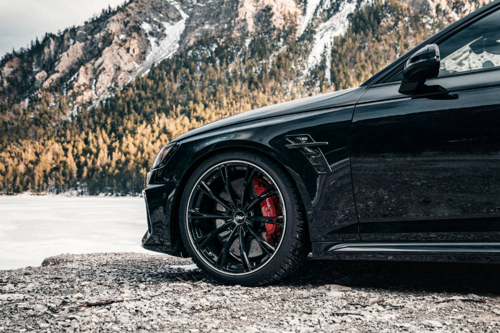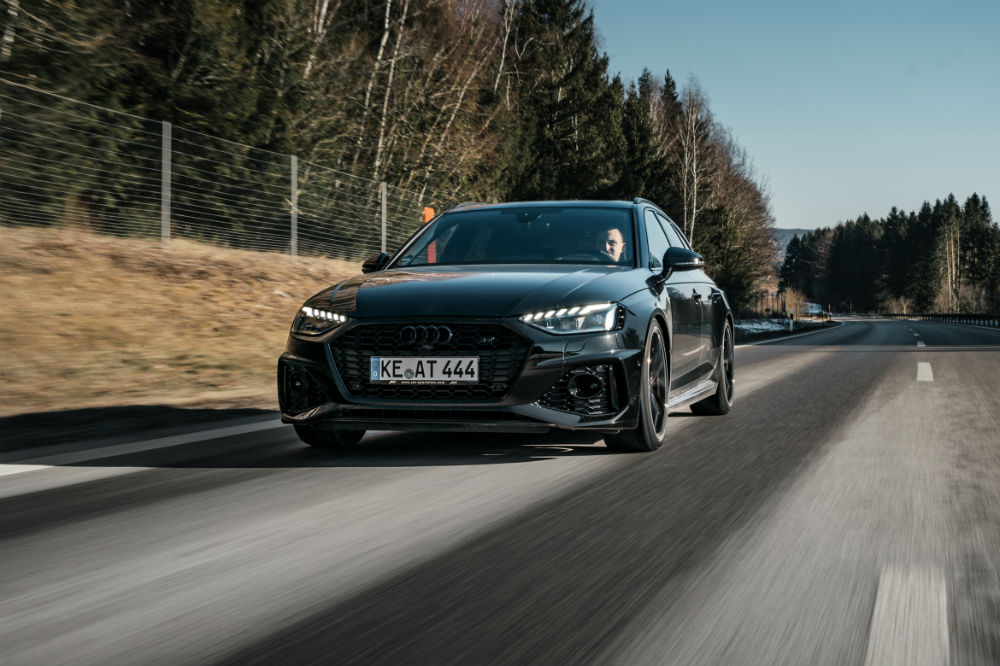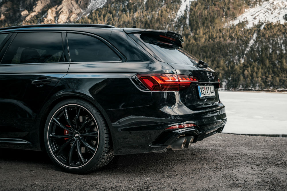No es que el Audi sea un modelo precisamente discreto, puesto que ya deja bastante claro de serie el hecho de que es la variante con más pedigrí de la familia A4, pero con los añadidos que recibe por parte de ABT es todavía más difícil que pase desapercibido: monta un alerón fabricado en CFRP con un acabado en negro brillante y calza llantas de diseño DR y FR de 20 pulgadas de color negro, pero también puede optar por las GR, de 21 pulgadas de diámetro y con acabado brillante o mate.