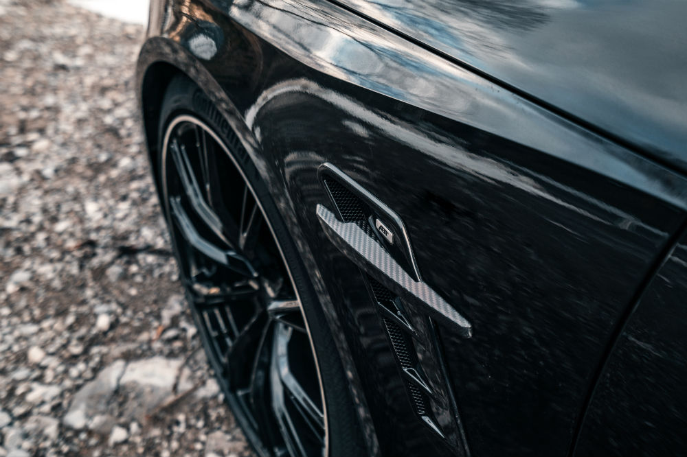 También asoma en la zaga un nuevo sistema de escape de acero inoxidable, que cuenta con cuatro salidas rematadas en sus colas por fibra de carbono y tienen un diámetro de 102 mm. Por ellas sale el rugido que proporciona el extra de potencia que ahora tiene el alemán.