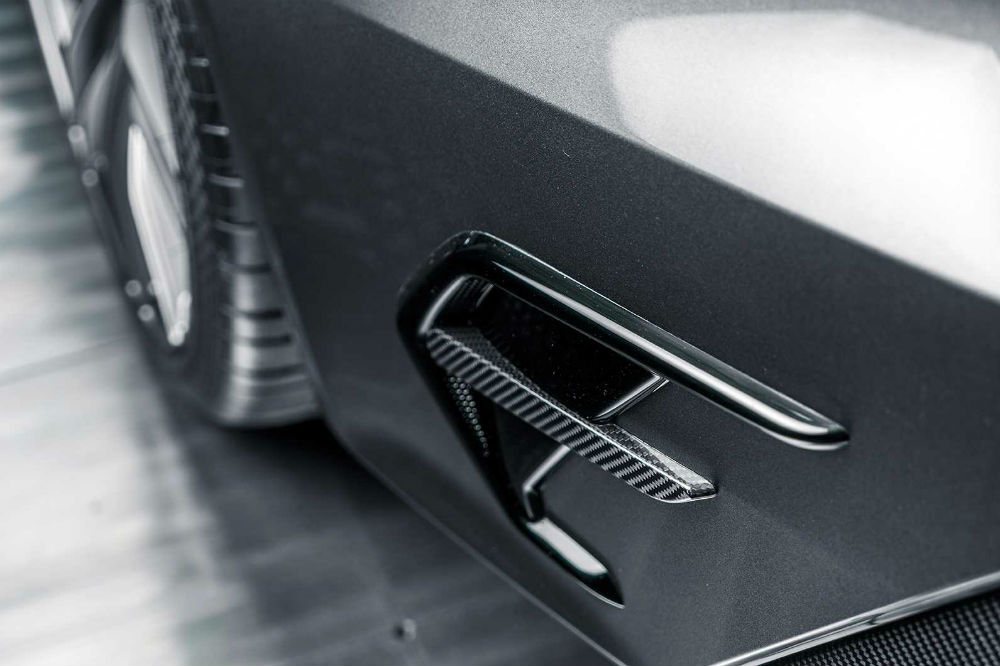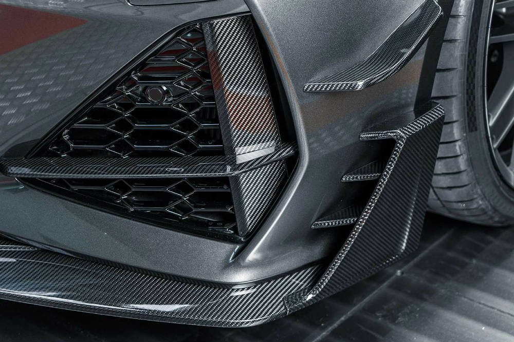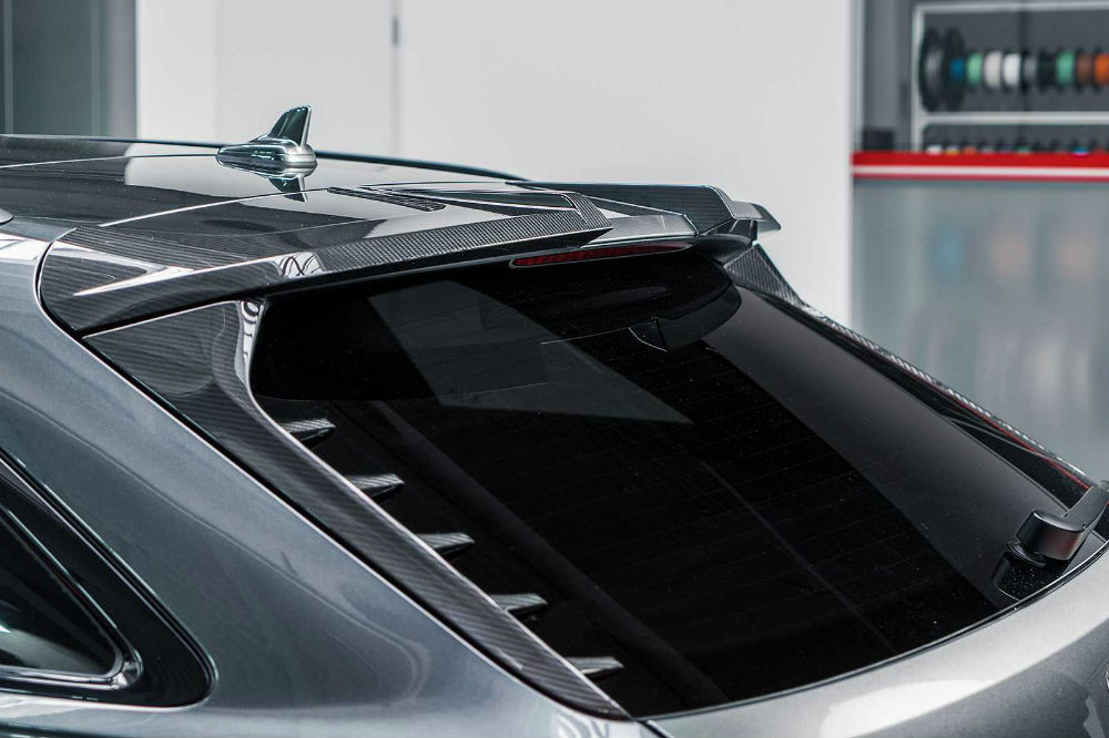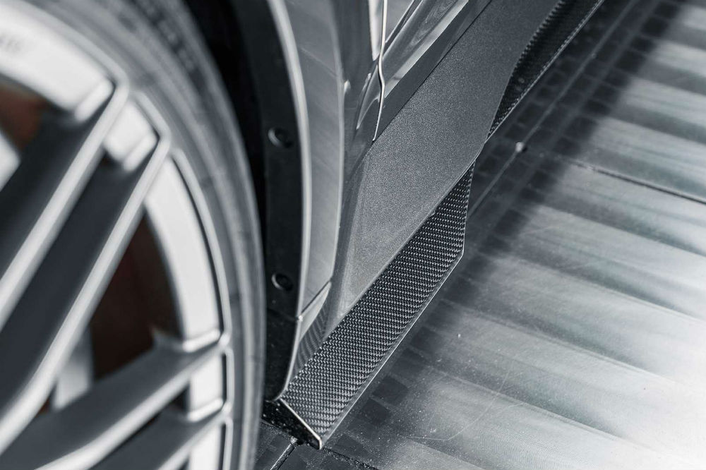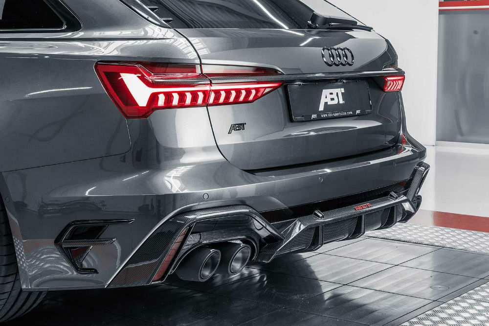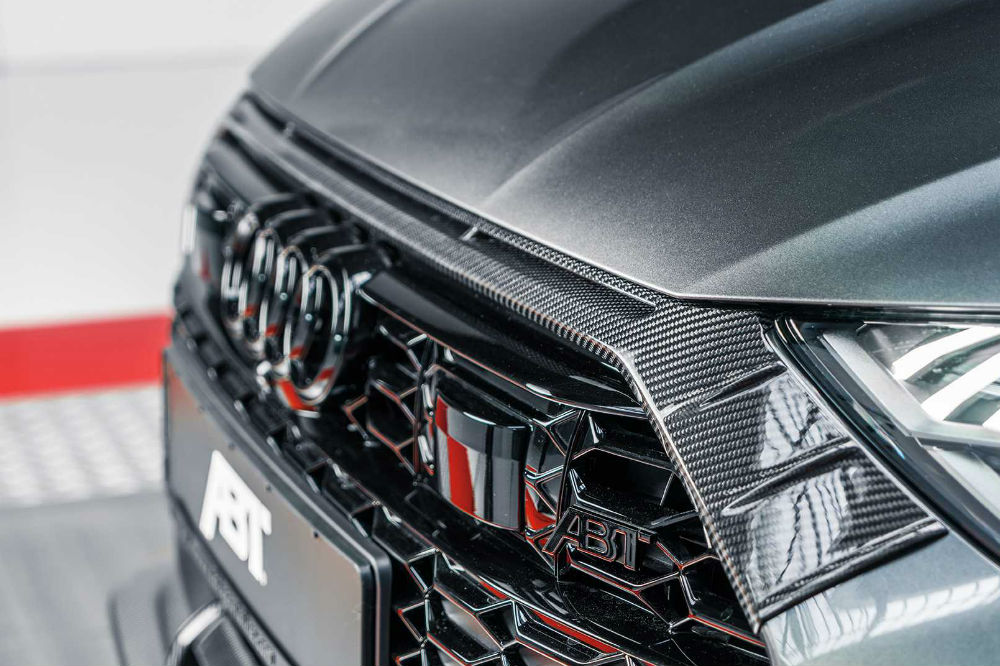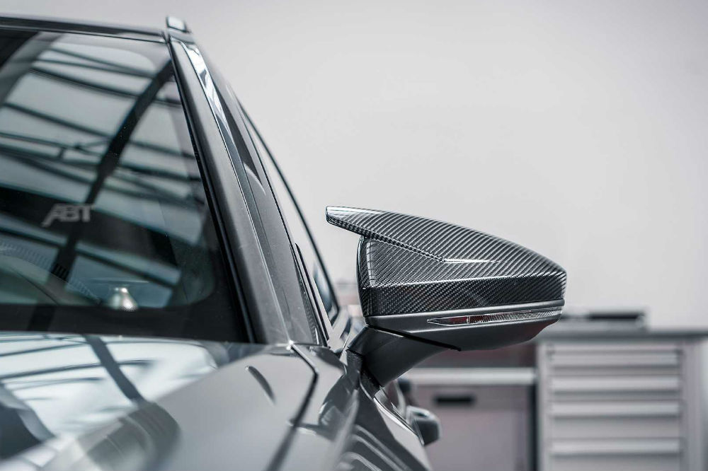 ABT, como es marca de la casa, incluye en el paquete un completo kit de carrocería en el que el carbono es el protagonista: labio inferior en el paragolpes delantero, cannards, faldones laterales, entradas y salidas de aire en los pasos de rueda y un difusor completamente nuevo. Además, calza unas llantas ABT High Performance HR22 de 22 pulgadas.