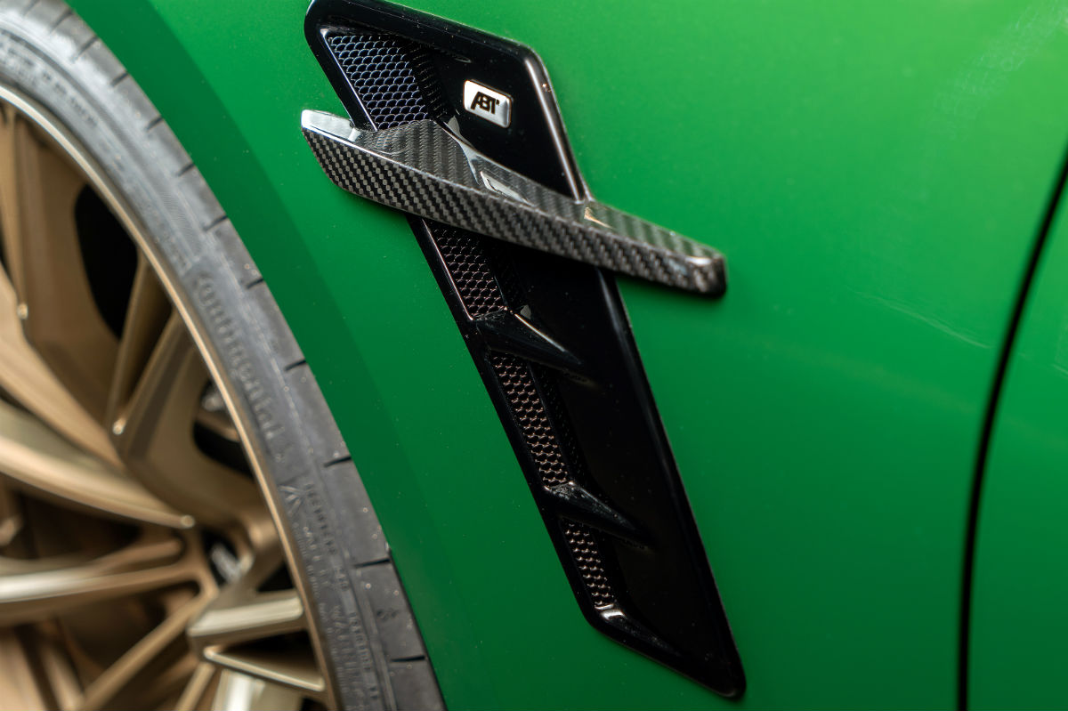 Empezando por su imagen, lo primero que llama la atención es el color Sonoma Green metalizado de la carrocería, que tiene en el tono Racing Gold mate de las llantas un punto de contraste muy visual. Éstas, por cierto, son el modelo ABT Sport GR y tienen unas dimensiones de 21 pulgadas.