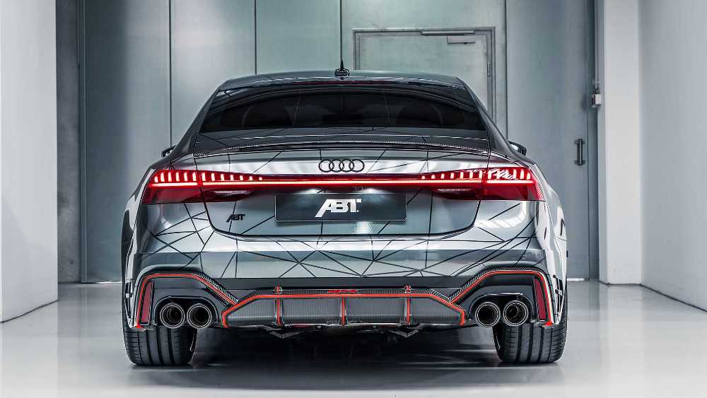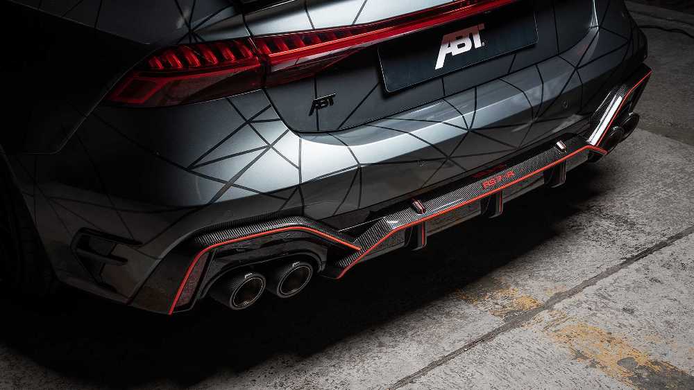 Además de los ajustes de rendimiento, ABT ha equipado el RS 7 Sportback con un juego de llantas de 22 pulgadas y un sistema de escape con salidas cuádruples en lugar de las salidas ovales que caracterizan a todos los productos de Audi Sport. El exterior está terminado con un vinilo a medida, un nuevo splitter instalado sobre un parachoques con apéndices aerodinámicos, un alerón trasero, taloneras, salidas de ventilación en los guardabarros, nuevas carcasas de los espejos retrovisores y un difusor bañado en fibra de carbono.