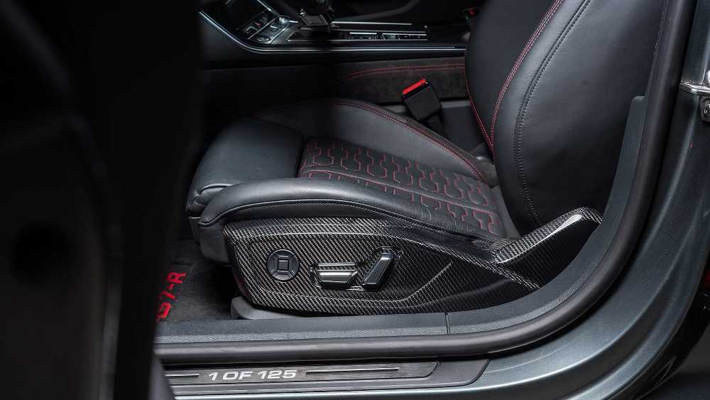 En el interior también se han realizado algunos ajustes específicos en carbono y cuero. La consola central ahora tiene una insignia que indica que el RS7-R 2020 será una edición de producción limitada, ya que solo se van a fabricar 125 unidades. También son nuevas las terminaciones en Alcantara y fibra de carbono en el volante, la consola central o el salpicadero, así como unos asientos de cuero con un nuevo patrón y costuras en rojo a juego con las nuevas alfombrillas.