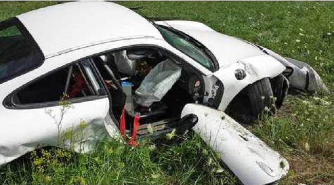 El impacto del Porsche 911 GT3 contra el Toyota Yaris fue tan potente que el coche japonés dio varias vueltas de campana antes de detenerse finalmente sobre su propio techo. El deportivo alemán, sin embargo, no sufrió tantos daños y acabó deteniéndose 150 metros más adelante.