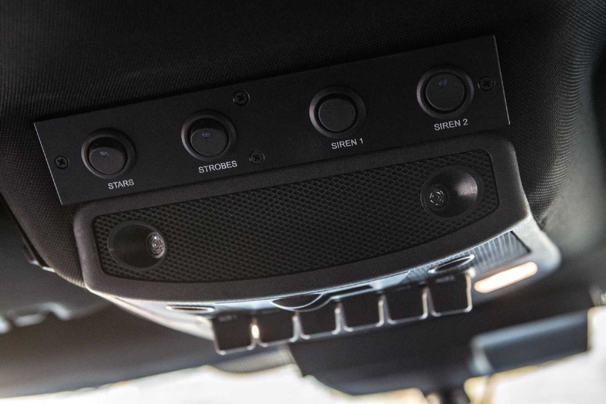 Además, también ha añadido un completo conjunto de sistemas de seguridad formado por tiradores de las puertas que puedan provocar un electroshock, defensas extra para ambos paragolpes, sirena, luces estroboscópicas, sistema de sonido de alta potencia, un sistema de batería doble y neumáticos tipo run-flat que permiten seguir circulando una vez pinchados a velocidades de hasta 80 km/h.