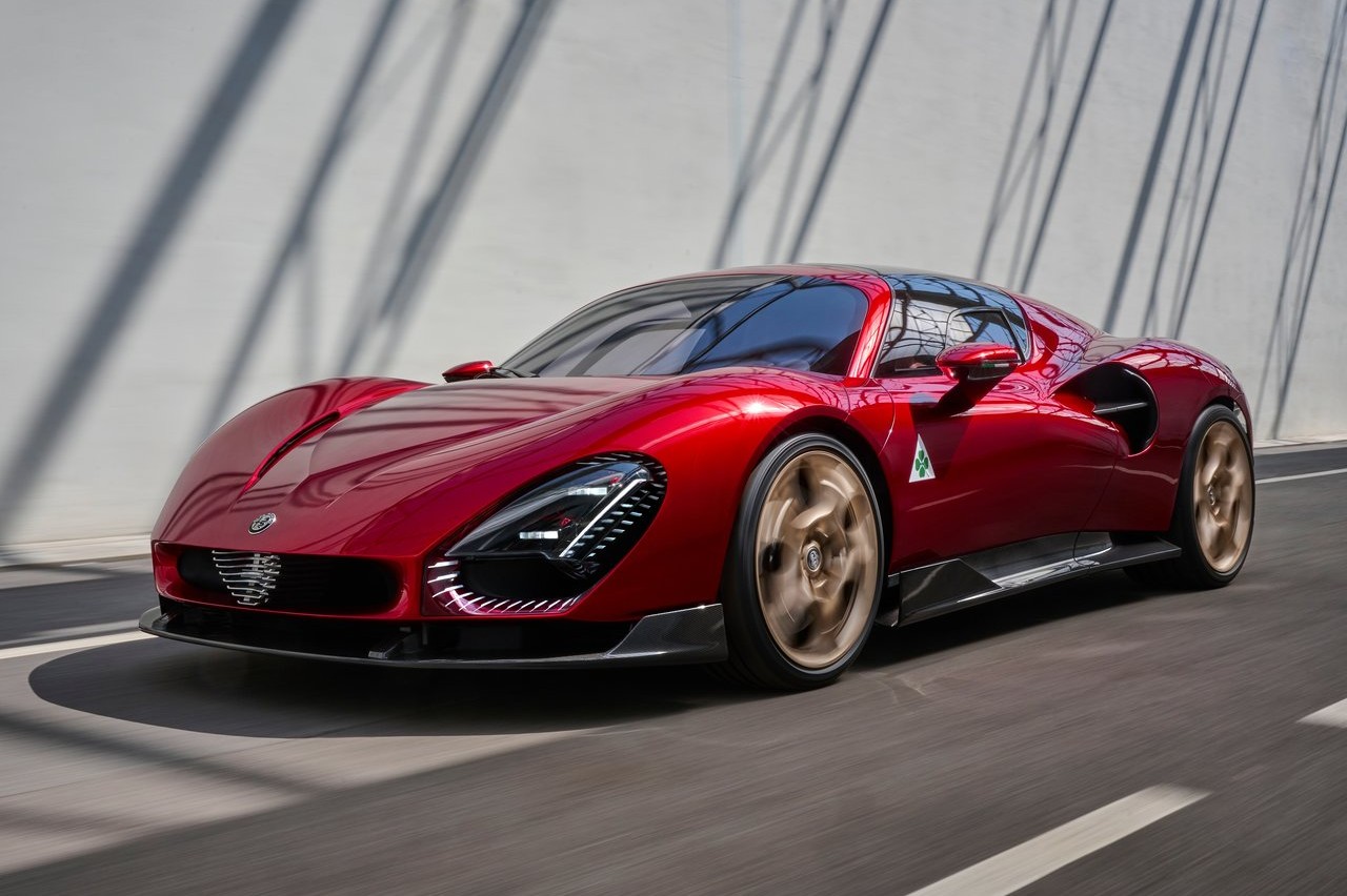 El nuevo Alfa Romeo 33 Stradale es un coche de carreras homologado para calle. Está disponible en dos versiones, una de combustión, a través de un V6 biturbo, y otra eléctrica. Después de más de 50 años, Alfa Romeo vuelve al mundo de los ‘fuoriserie’ (fabricado a medida) con una serie limitada a sólo 33 unidades, todas ellas ya vendidas. La producción de cada una de ellas correrá a cargo de Carrozzeria Touring Superleggera. La marca no ha desvelado el precio.