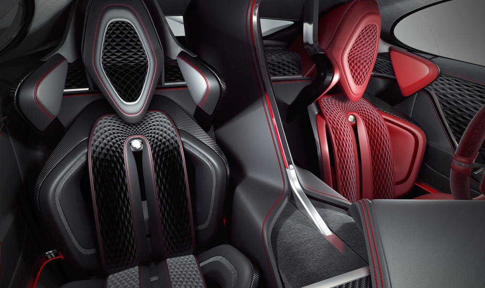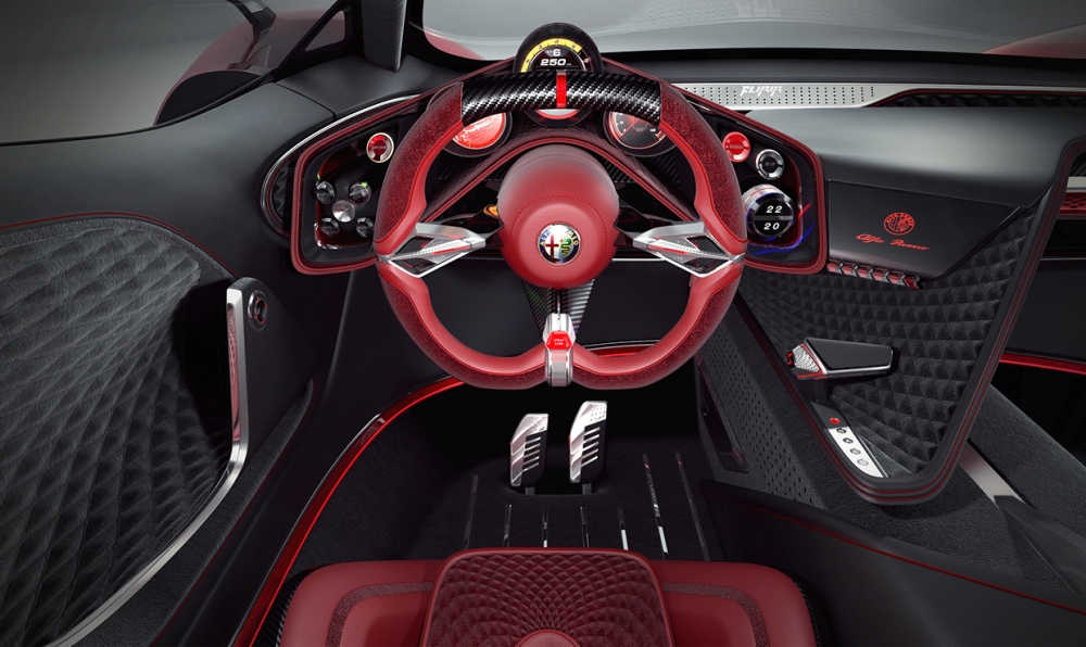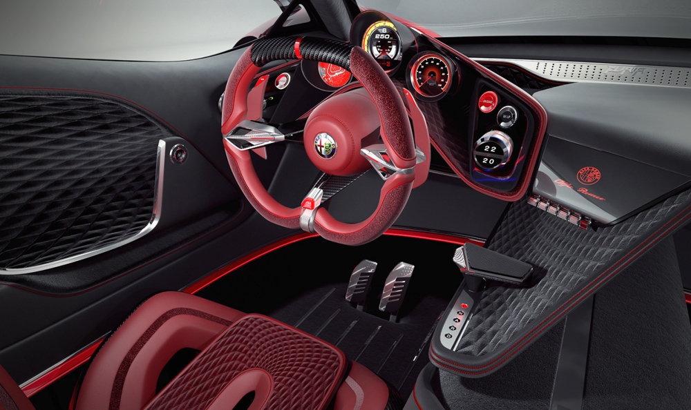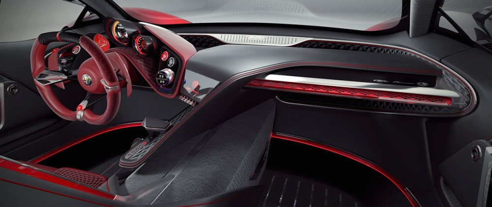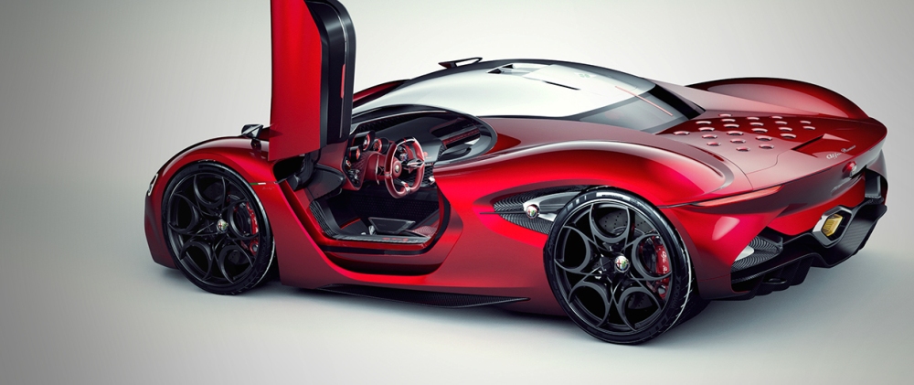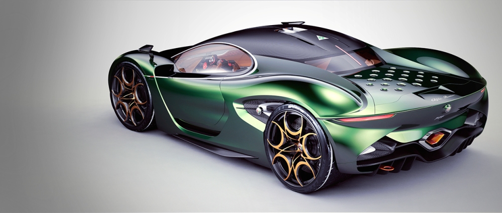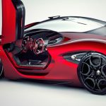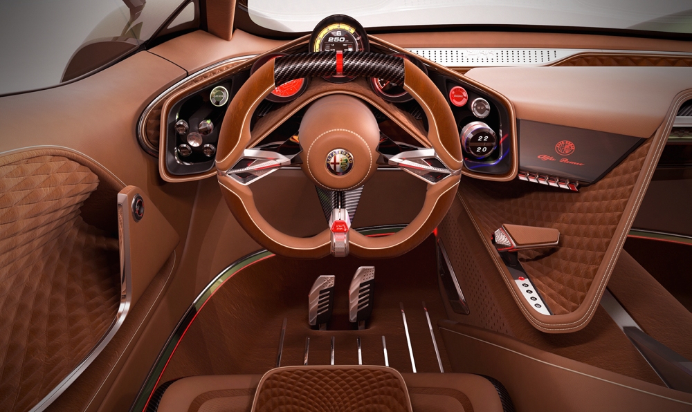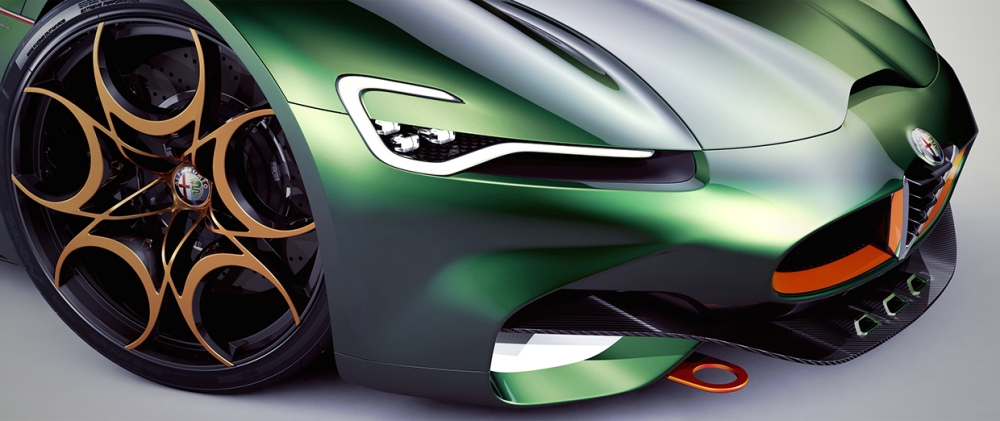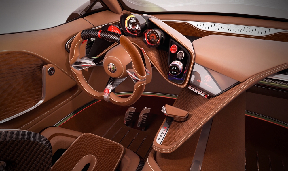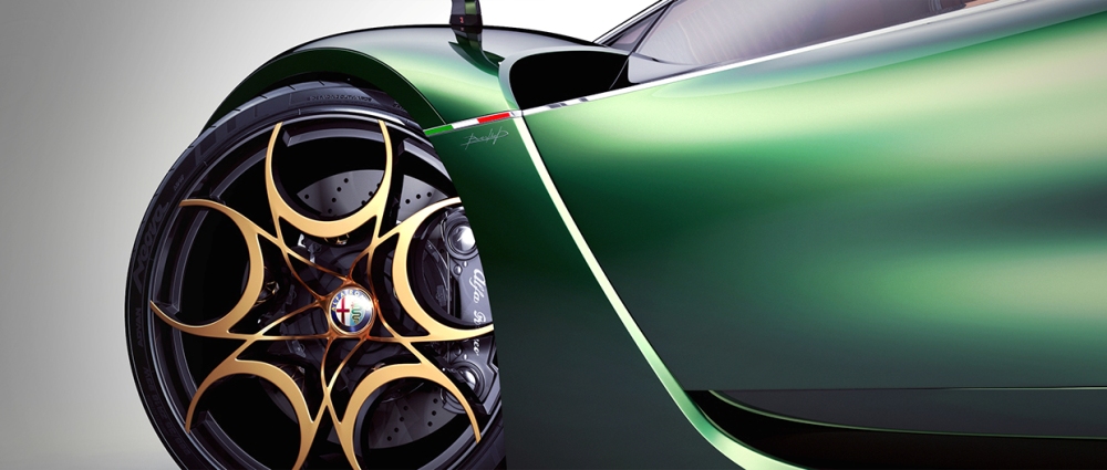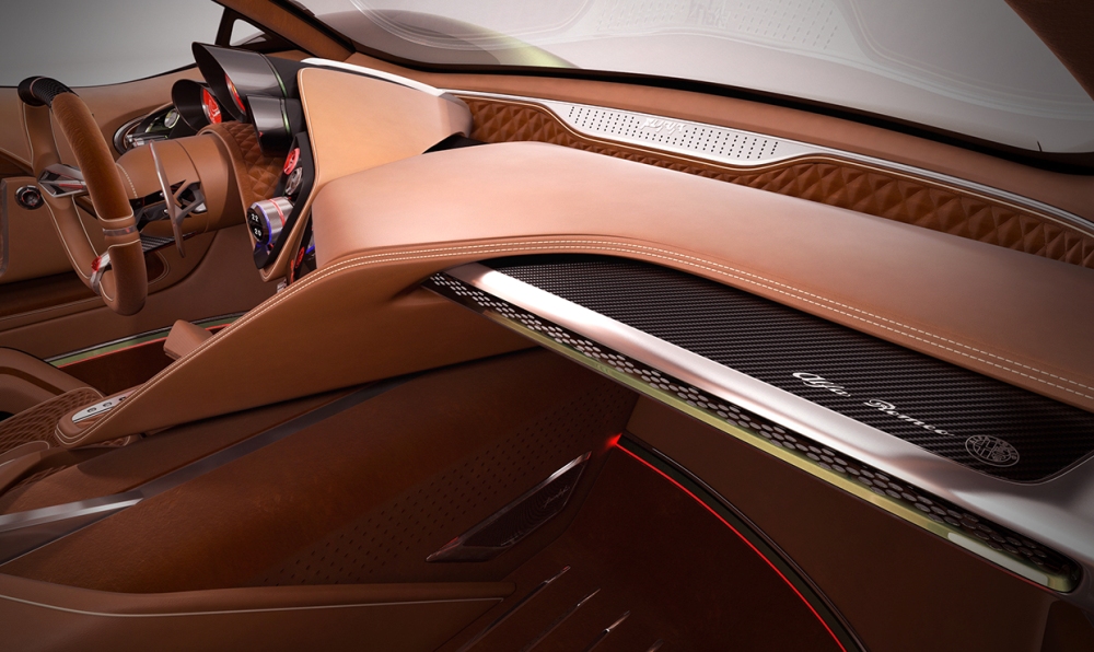 El diseñador polaco asegura que se ha inspirado en una gran cantidad de vehículos modernos dentro de un paquete que combina la belleza, la elegancia y las proezas deportivas de la mejor manera posible. El frontal está basado en el 33 Stradale y en el GTV Spider, por lo que destacan los pronunciados paso de rueda, la característica parrilla triangular de la marca, las líneas fluidas y una cabina especial.