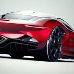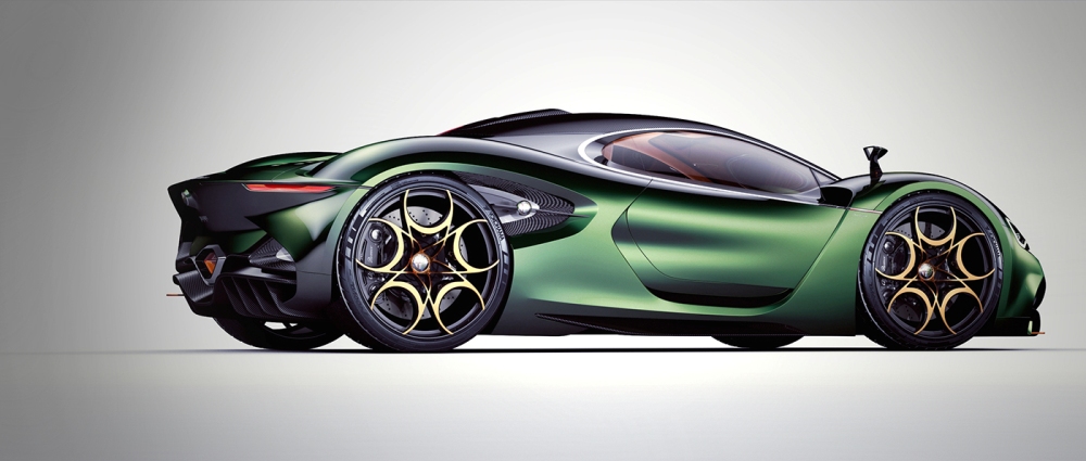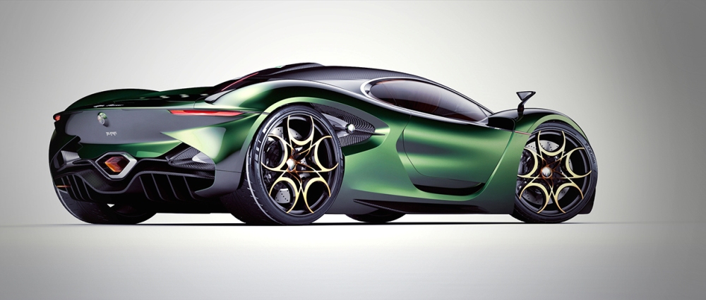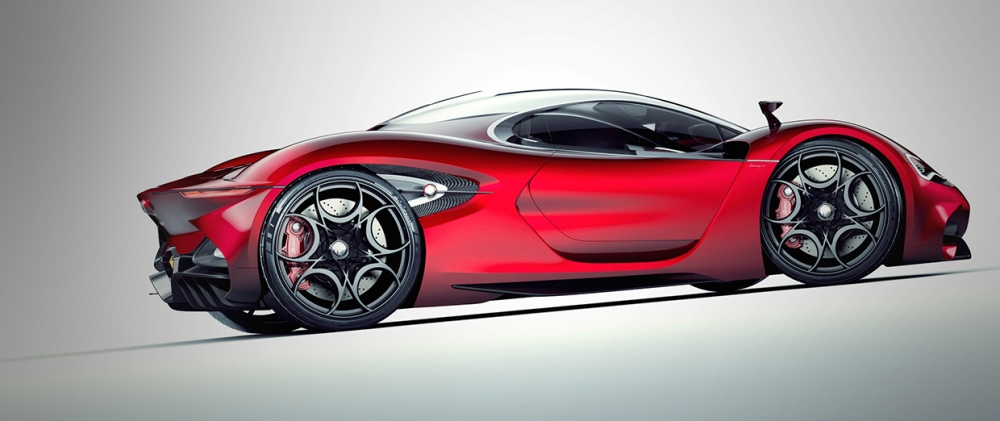 Llegados a la zaga del Alfa Furia, podemos ver como el diseñador se ha inspirado en el Tipo 33-2 Daytona, en el G1 y en el Cuneo 33 Stradale. Destaca, por encima de todo, la tapa del motor que deja al descubierto similitudes como las que ofrece el Ferrari Sergio. También en la parte trasera podemos mencionar el grupo óptico de LED afilado, el difusor en negro, el escape hexagonal y el gancho naranja que resalta sobre el resto.