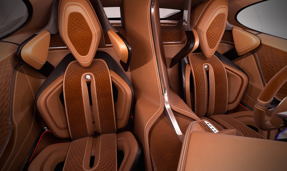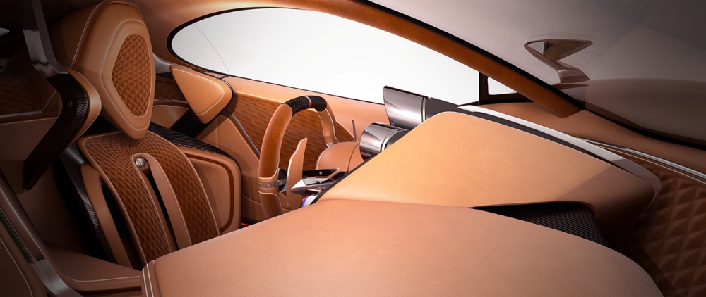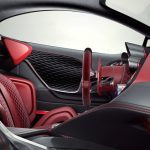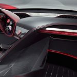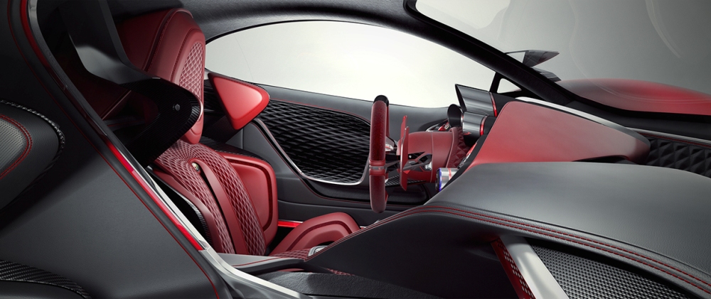 El interior, al mismo tiempo, es quizás lo más destacado del Alfa Romeo Furia. El diseñador nos ha presentado dos diseños, en rojo y verde, con dos interiores que también cambian. Podemos ver que tienen en común la forma de los asientos, del salpicadero y la consola, y de los asientos deportivos, pero en uno tenemos cuero marrón con zonas acolchadas, muestra de lujo y buen hacer, y en el otro tenemos Alcántara y toques en negro que denotan el carácter más deportivo de este coche.