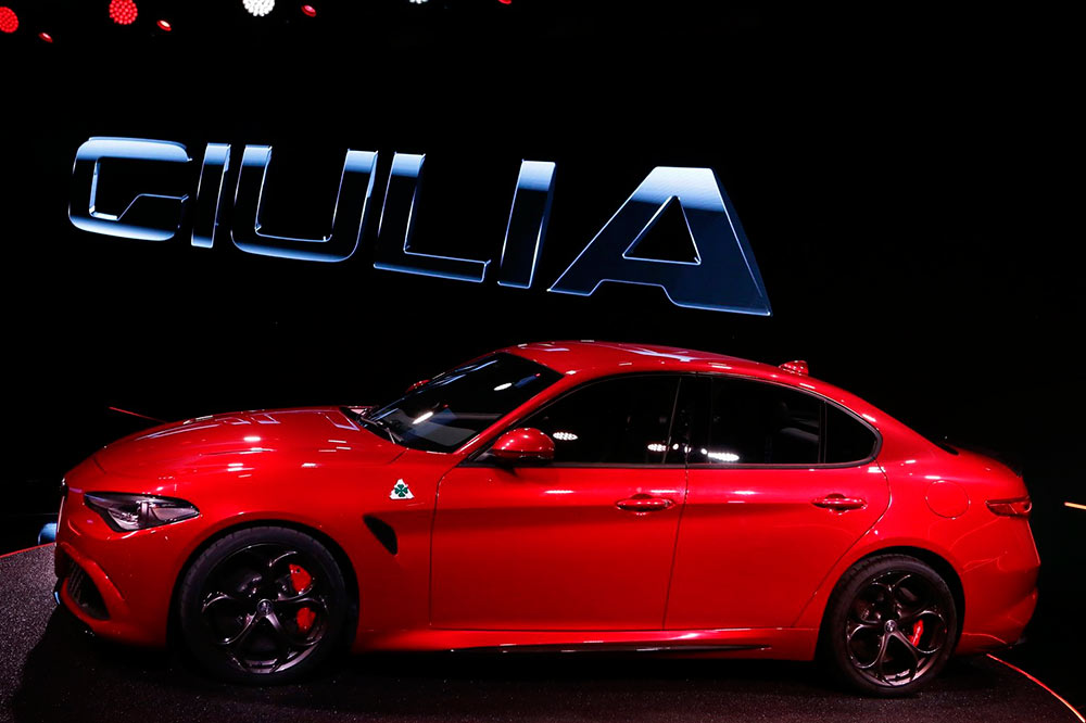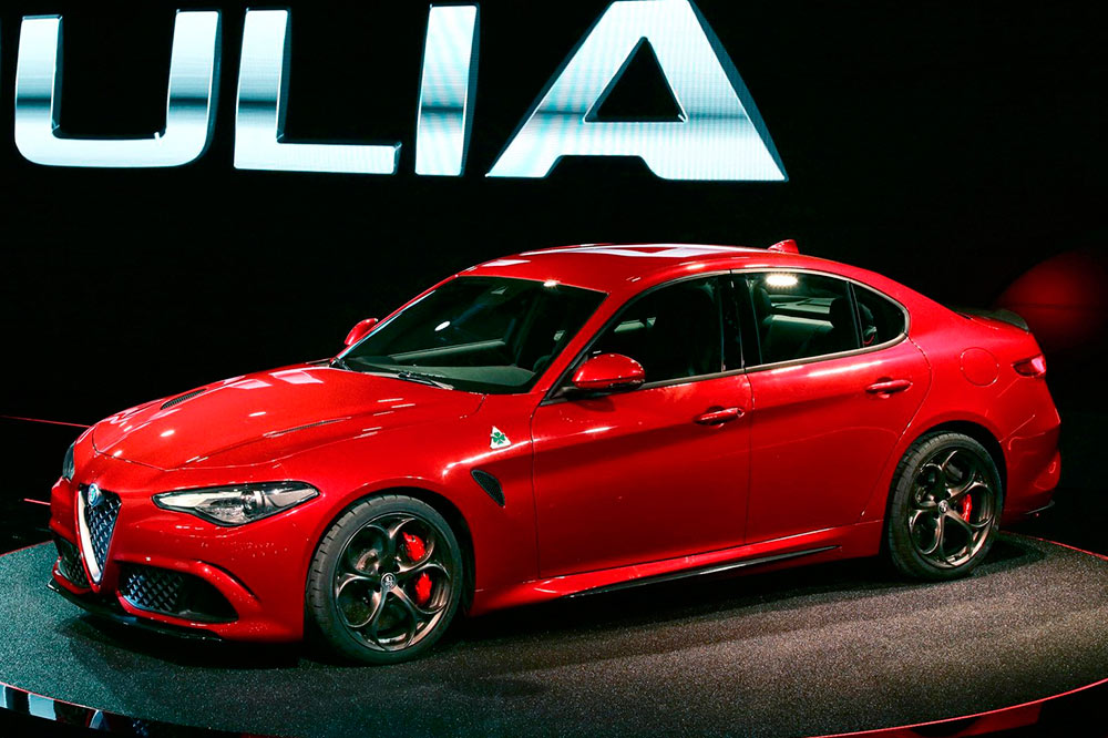 La punta de lanza es el deportivo Alfa Romeo Giulia Quadrifoglio, una berlina con un motor turbo de gasolina de 6 cilindros capaz de entregar 510 CV de potencia. Con este bloque, que ha sido desarrollado por técnicos procedentes de Ferrari -este bloque lo compartiría con el Ferrari Dino- y que está hecho completamente de aluminio para aligerar el conjunto, es capaz de acelerar de 0 a 100 km/h en tan solo 3,9 segundos. A pesar de sus prestaciones, según la compañía, el consumo medio es ajustado gracias al sistema de desactivación de los cilindros de control electrónico.