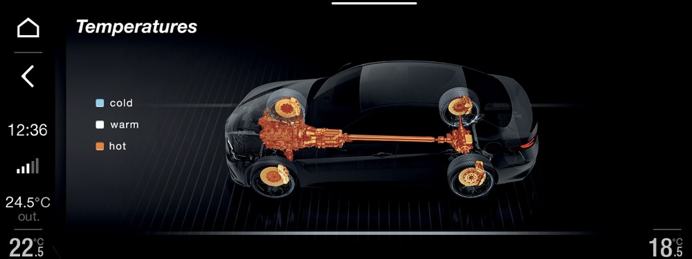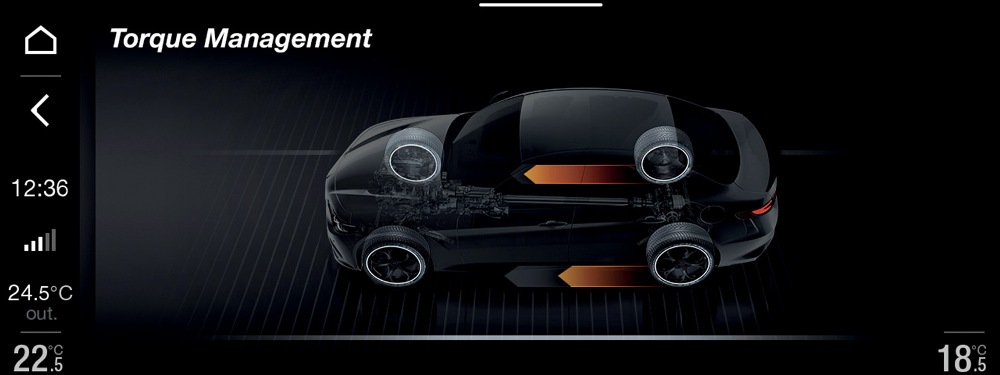 El sistema de infoentretenimiento se ha renovado y cuenta con una pantalla táctil de 8,8 pulgadas. A través de esta pantalla ahora se pueden visualizar una serie de pantallas específicas que permiten monitorizar la temperatura de diferentes componentes mecánicos, la distribución de par, la presión del turbo y la potencia utilizada, así como una serie de cronómetros digitales para medir la aceleración y la velocidad máxima.