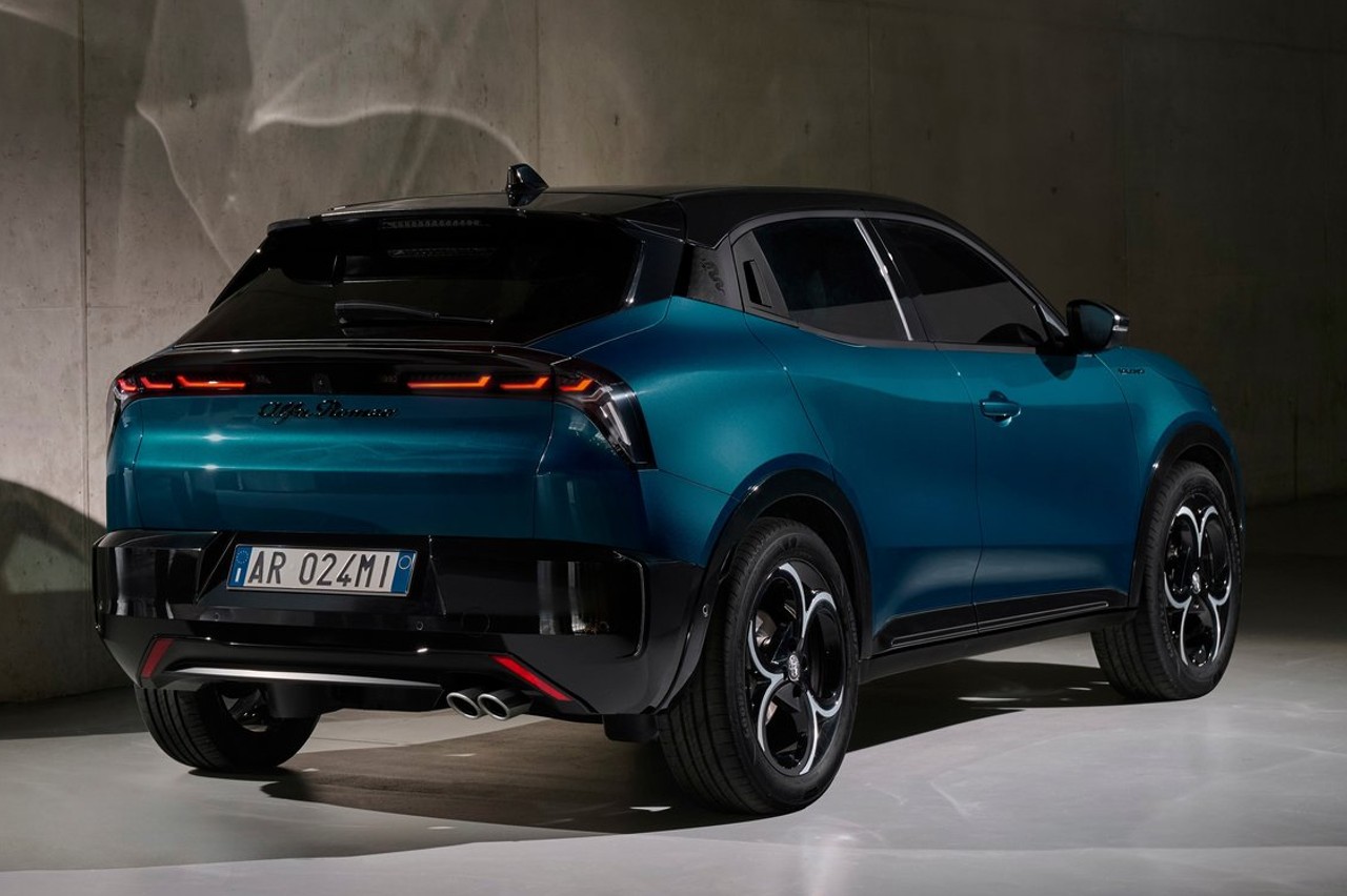 En la vista lateral, encontramos una línea de cintura muy elevada, unos grandes pasos de rueda que acentúan la deportividad del modelo y el característico tirador de la puerta trasera oculto que le proporciona un aspecto coupé. Ya en la zaga sorprende el diseño de cola truncada, inspirado en el Alfa Romeo Giulia TZ y las ópticas integradas en una franja oscura que recorre toda la parte posterior. Todo se completa con unas llantas que pueden ser de hasta 20 pulgadas.