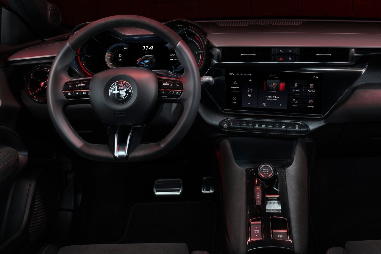En cuanto a la versión eléctrica, denominada Elettrica, tenemos por un lado una opción de 115 kW (156 CV) de potencia con una batería de 54 kWh de capacidad que le proporciona una autonomía de 410 kilómetros WLTP (hasta 590 kilómetros en ciudad). Por otro lado, está el Milano Veloce, con un motor eléctrico de 240 CV y la misma batería, aunque la marca no ha facilitado en este caso la autonomía, pero entendemos que el rango será menor. Lo que sí ha confirmado es que podrá pasar del 10 al 80% en menos de 30 minutos con una carga a 100 kW en corriente continua.