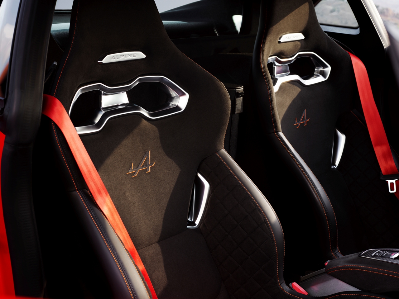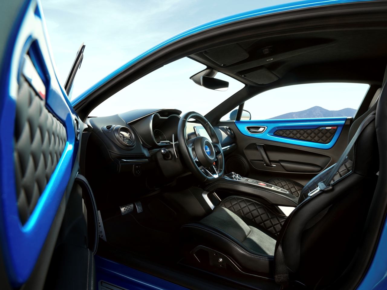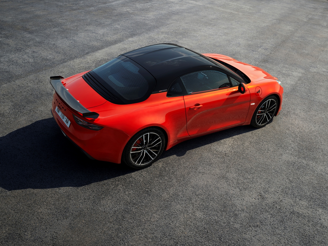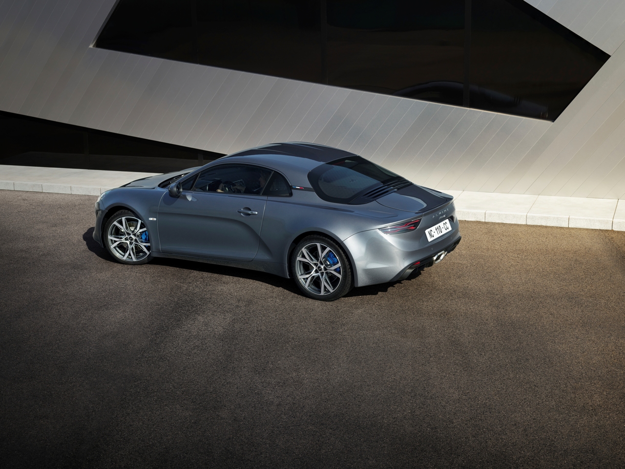 - Techo de carbono con acabado brillante que reduce el peso en 1,9 kilos (A110 GT y A110 S).