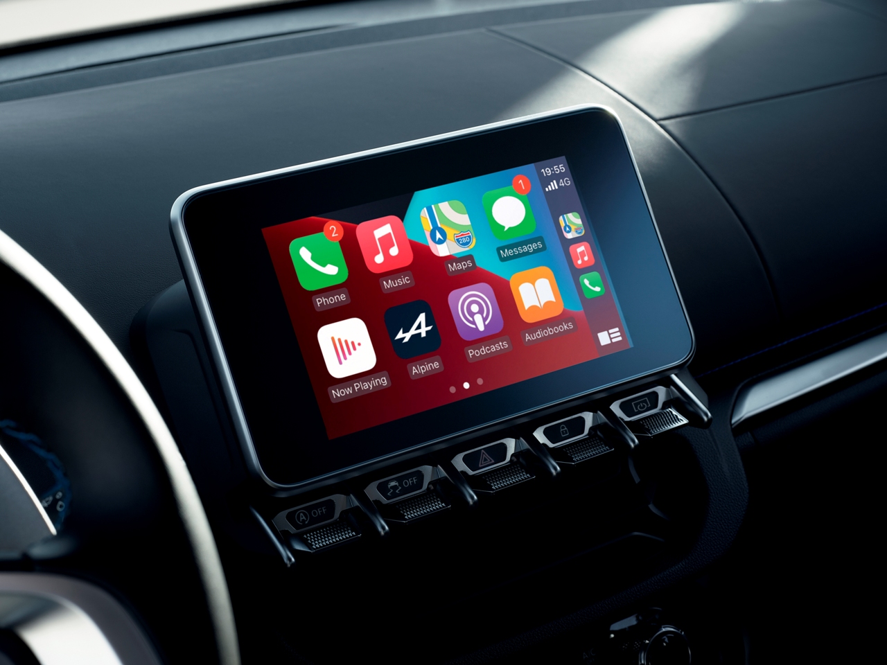 Una de las principales actualizaciones la encontramos en el sistema multimedia Alpine con una pantalla táctil de 7 pulgadas. Ofrece Bluetooth y dos tomas USB, así como compatibilidad con Android Auto y Apple CarPlay, y actualizaciones inalámbricas. También incluye navegación a bordo y el menú Alpine Telemetrics opcional (salvo en el A110 S) permite visualizar diferentes datos enfocados al rendimiento del vehículo. El sistema está ligado a un equipo de audio de dos, cuatro o cinco altavoces.