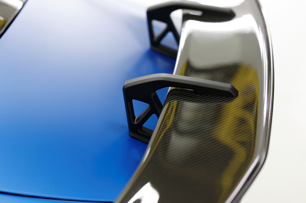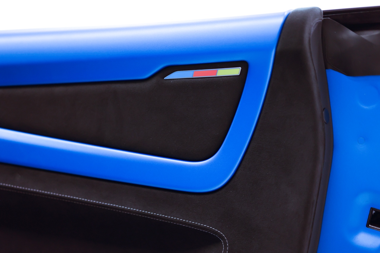 La parte trasera del Alpine es más oscura, a juego con el alerón y las llantas de carbono que cubren unas pinzas de freno terminadas en naranja como un guiño a los colores históricos de Fernando Alonso. Otros detalles incluyen lo bordes grises de las llantas, la bandera azul, naranja y amarilla en las ventanillas traseras y el autógrafo del asturiano protegida con barniz.