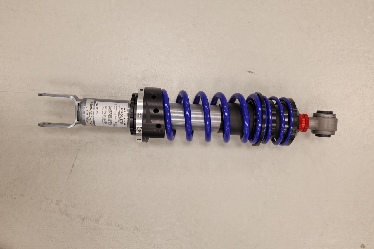 El nuevo Alpine A110 R Fernando Alonso Edition también presenta una configuración específica de chasis. La suspensión se puede regular para reducir la altura de la carrocería en 10 mm para su uso exclusivo en la pista, al mismo tiempo que se ha aumentado la rigidez de la misma en un 5%. Esta configuración de la suspensión de circuito fue aprobada por el propio Fernando Alonso en el circuito de F1 de Barcelona.