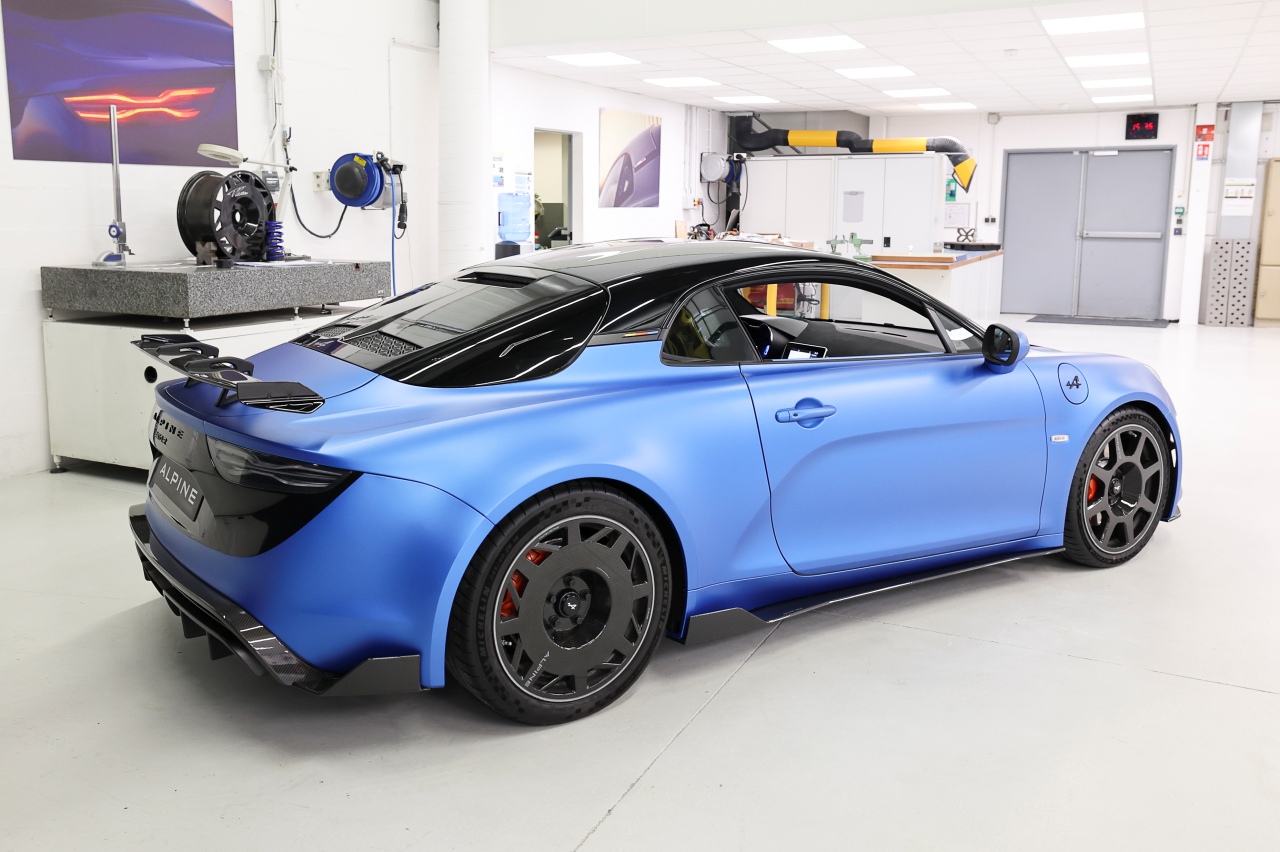 Basado en el también nuevo Alpine A110 R, esta edición limitada está terminada en Racing Matte Blue, el mismo color que el monoplaza del equipo. Tanto el capó delantero como el trasero de fibra de carbono están parcialmente pintados con el mismo color de la carrocería, combinados con el tono Deep Black del techo.