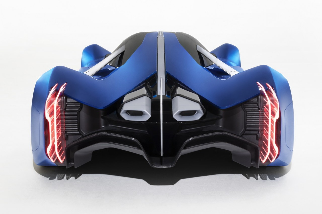 Prácticamente no hay un capó al uso ya que desde muy adelante comienza la cúpula que sirve de habitáculo y se prolonga hacia una zaga bastante futurista, con faros verticales de proporciones mínimas, un agresivo difusor y con dos voluminosas salidas de escape situadas en posición central.