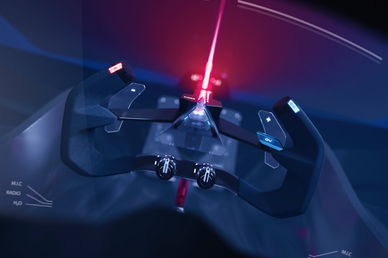 Pasando al interior, el Alpine Alpenglow Concept presenta una atmósfera propia de un coche de carreras, concretamente, de un monoplaza. Una de las características más llamativas es que el habitáculo es transparente y adopta la forma de un casco. Está ubicado entre los dos tanques de hidrógeno que alimentan la mecánica y tiene toques azulados.