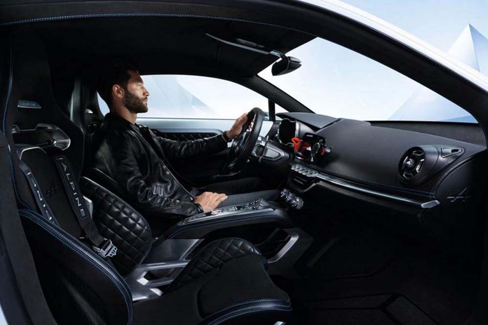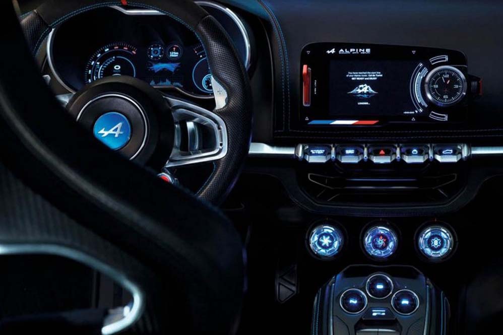 En lo referente al interior, el Alpine Vision concept tiene una distribución orientada al conductor, un diseño minimalista que reduce el número de botones y controles, un tablero de instrumentos totalmente digital y una mezcla de cuero, aluminio y fibra de carbono. Dos asientos de corte deportivo con arneses de seguridad para aumentar el atractivo del habitáculo, así como un modo Sport que lo volverá un poco más sensible y ágil.