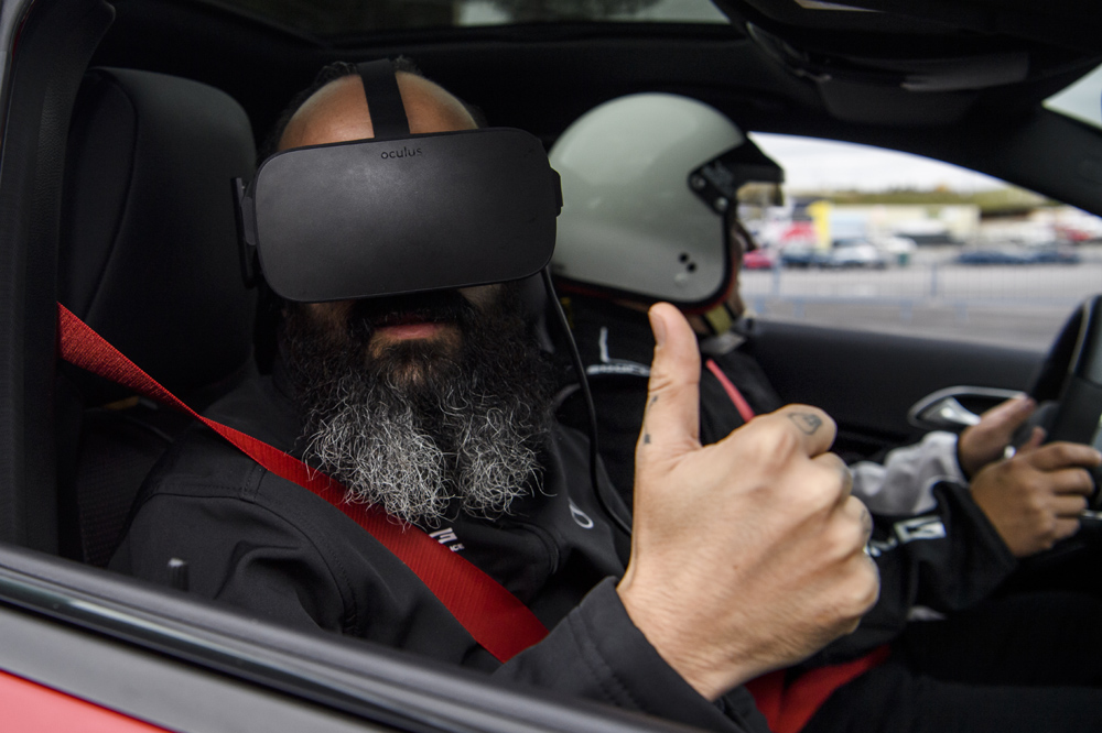 A continuación, ‘tejieron’ virtualmente un recorrido que encajara con las características del trazado madrileño y lo adaptaron para que se pudiera reproducir con unas gafas de realidad virtual mientras un coche de verdad, un Mercedes-AMG A 45 4Matic, completaba un giro al Jarama. Sentado en el asiento del copiloto y con las gafas de realidad virtual puestas, uno tiene la sensación de estar circulando a toda velocidad entre el tráfico de Madrid, apoyado con el realismo que proporciona sentir las fuerzas G en las curvas o frenadas.