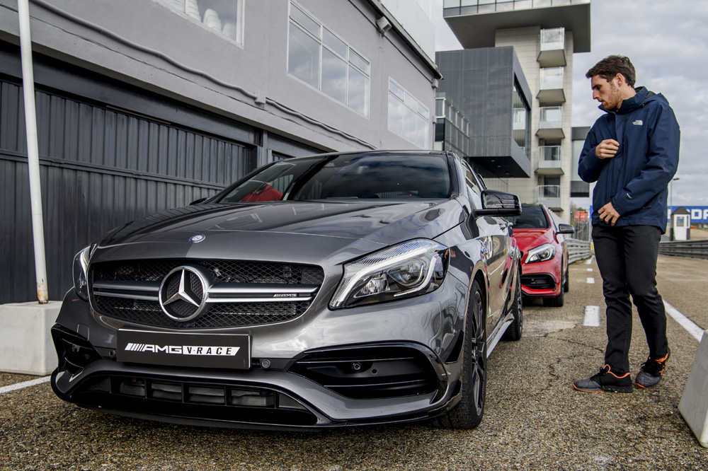 Nosotros hemos sido unos de los 20 afortunados que han podido probar la experiencia AMGVRace y lo cierto es que nos ha dejado alucinados. La sesión comenzó con un par de vueltas rápidas a bordo de un A 45 con un invitado de excepción al volante, nada menos que Daniel Juncadella, piloto del equipo de DTM de Mercedes-AMG. Nadie mejor que él para demostrar las capacidades de este compacto radical, que incluso con asfalto húmedo y frío, no tiene dificultades para rodar a ritmos elevadísimos.