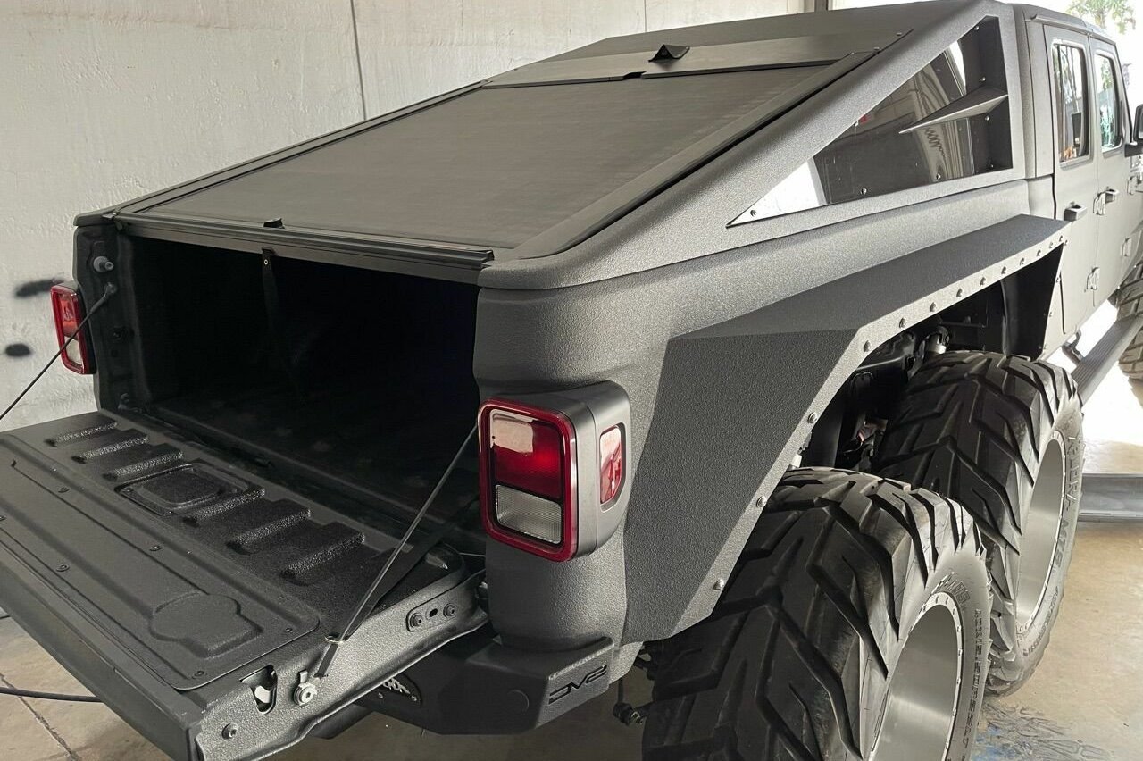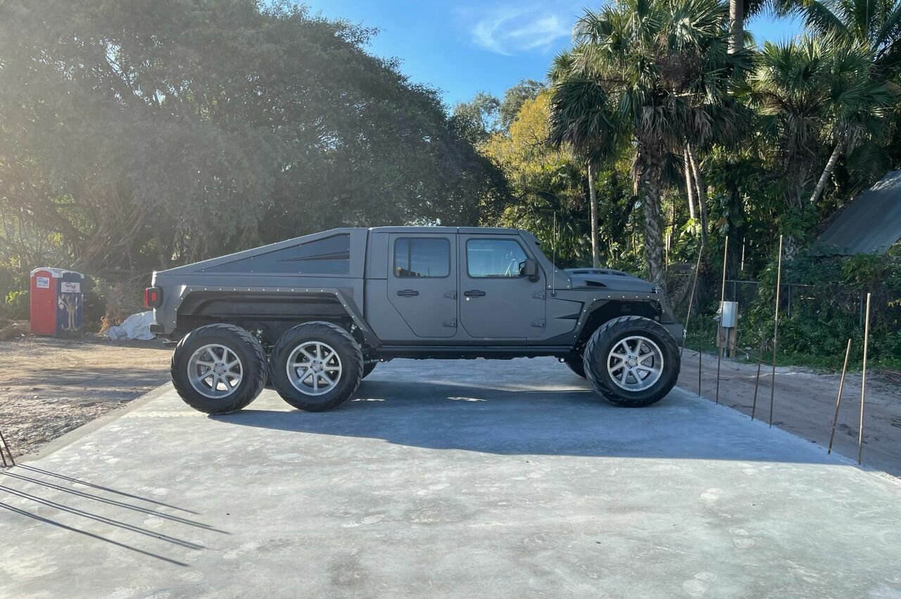 En el anuncio no se menciona en qué modelo de la compañía está basado, sin en el Jeep Wrangler (prueba) en el pick-up Gladiator. Su característica más notable es que cuenta con un tercer eje y seis ruedas, acompañado de una serie de importantes modificaciones en el exterior. Se incluyen nuevos paneles en el frontal, los laterales y la zaga. Al mismo tiempo, destaca una parrilla delantera personalizada, barra de luces LED y una cubierta a medida alrededor del parabrisas.