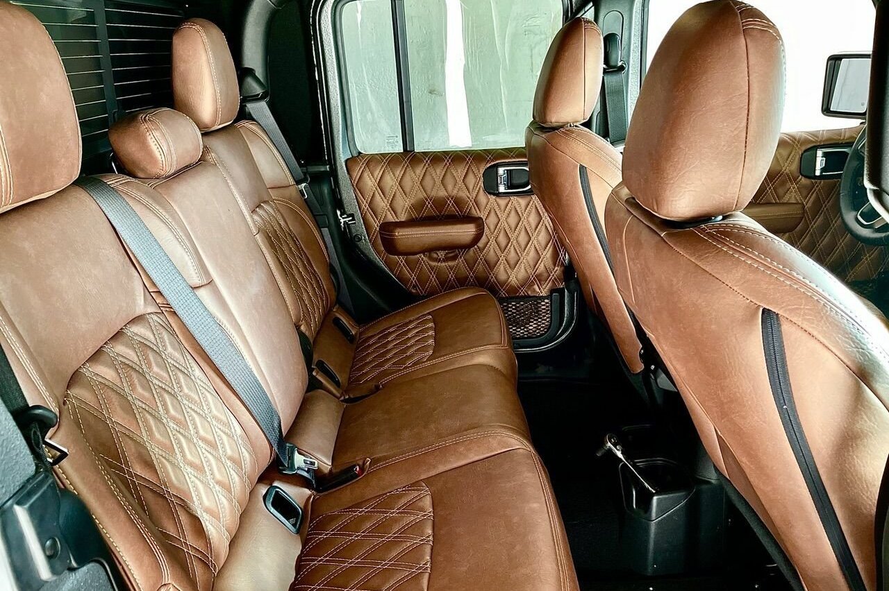 Otras mejores incluyen un cabrestante de 4.300 kg en la parte delantera y otro de 5.400 kg en la parte trasera. También ofrece llantas con neumáticos todoterreno de 40 pulgadas, estribos eléctricos en las puertas, y puertas y techo extraíbles. Un interior revestido en cuero cosido a mano con botón de arranque, cámara de visión traseras, conexión Bluetooth, navegador, sistema de sonido premium y Apple CarPlay.