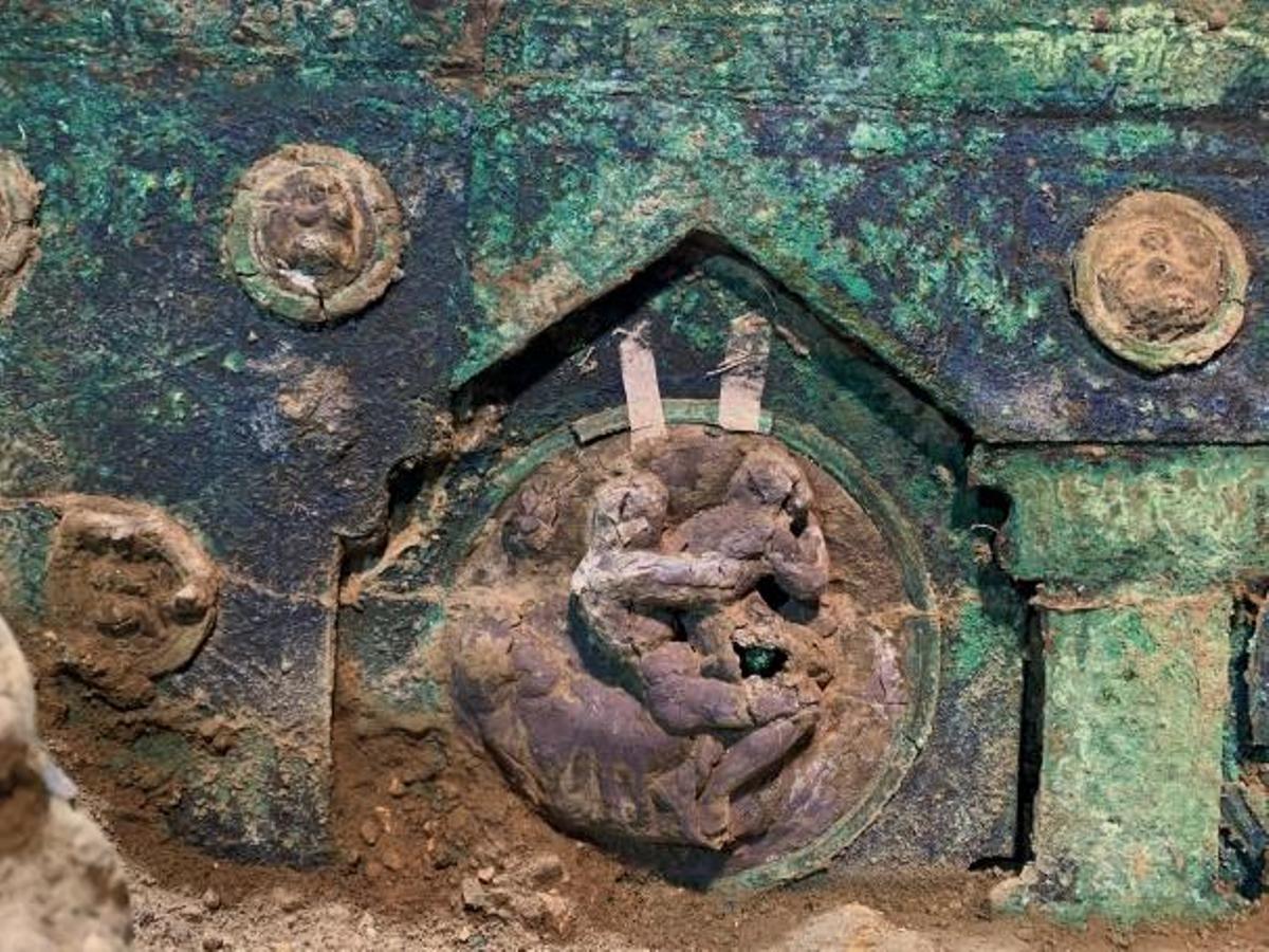 Los expertos han determinado que se trata de un pilentum, un tipo de carro utilizado por las élites romanas para eventos ceremoniales. Está “ricamente decorado” en ambos lados con molduras de broce grabado y paneles de madera pintados en rojo y negro. La parte trasera luce una serie de medallones decorativos de bronce y estaño con motivos que involucran a parejas en escenas eróticas.