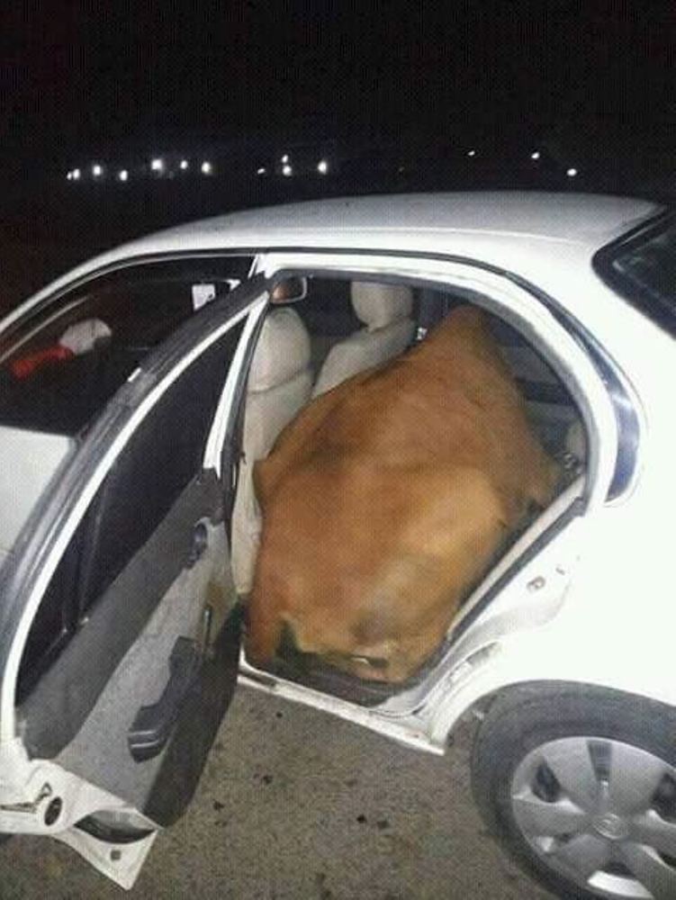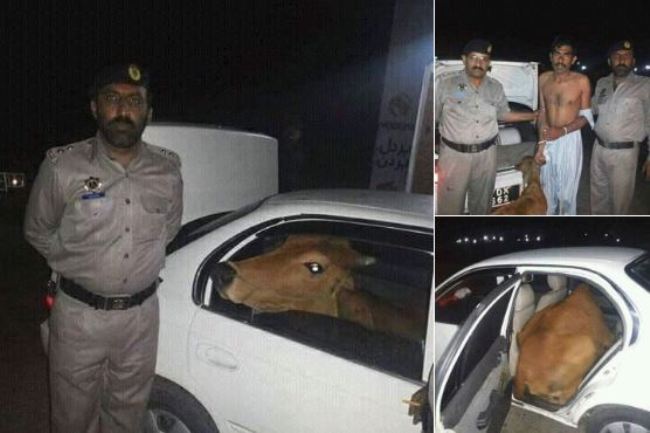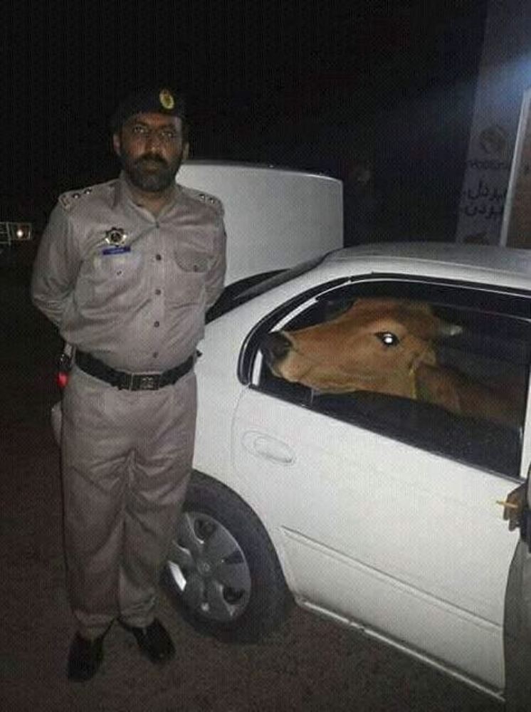 Según informa el Daily Pakistan, el conductor intentó robar las vacas poniendo a uno de los enormes y pesados animales en el asiento trasero de un pequeño sedán, que a juzgar por las fotos acabó consiguiendo, y la segunda vaca en el maletero, aunque a pesar de sus esfuerzos, el criminal fue finalmente sorprendido y detenido por la Policía.